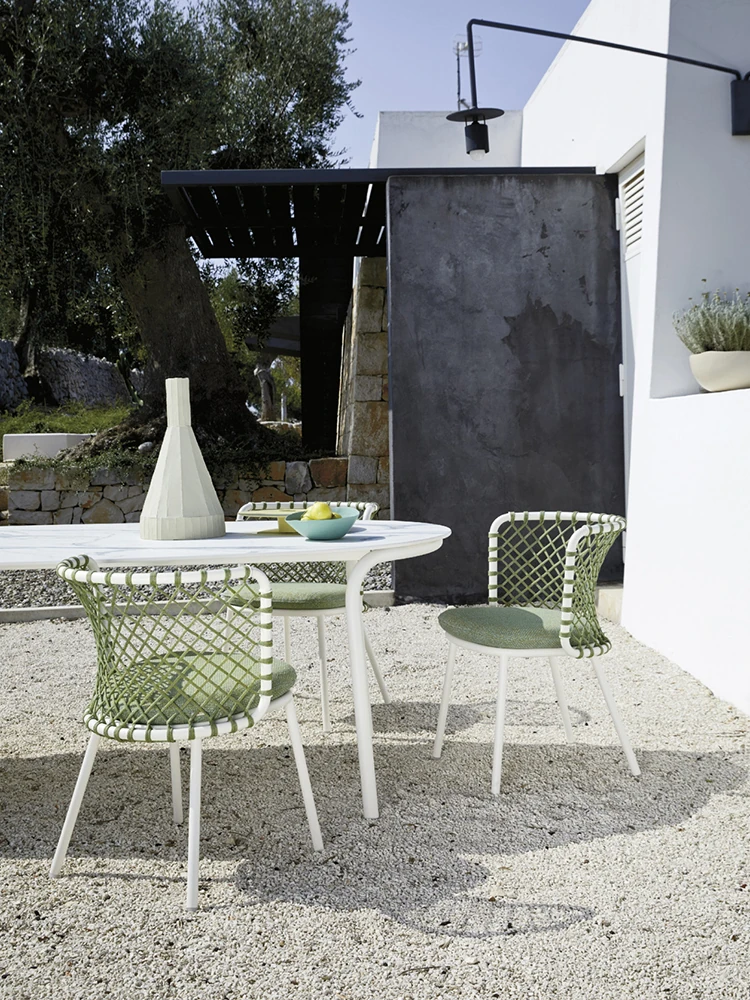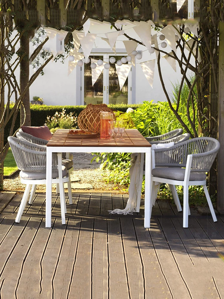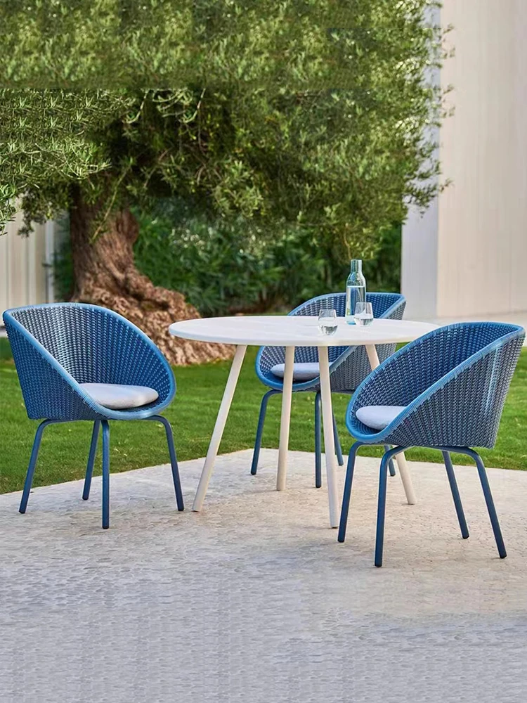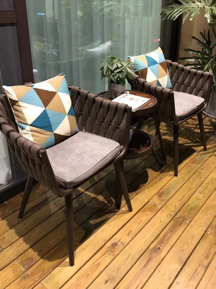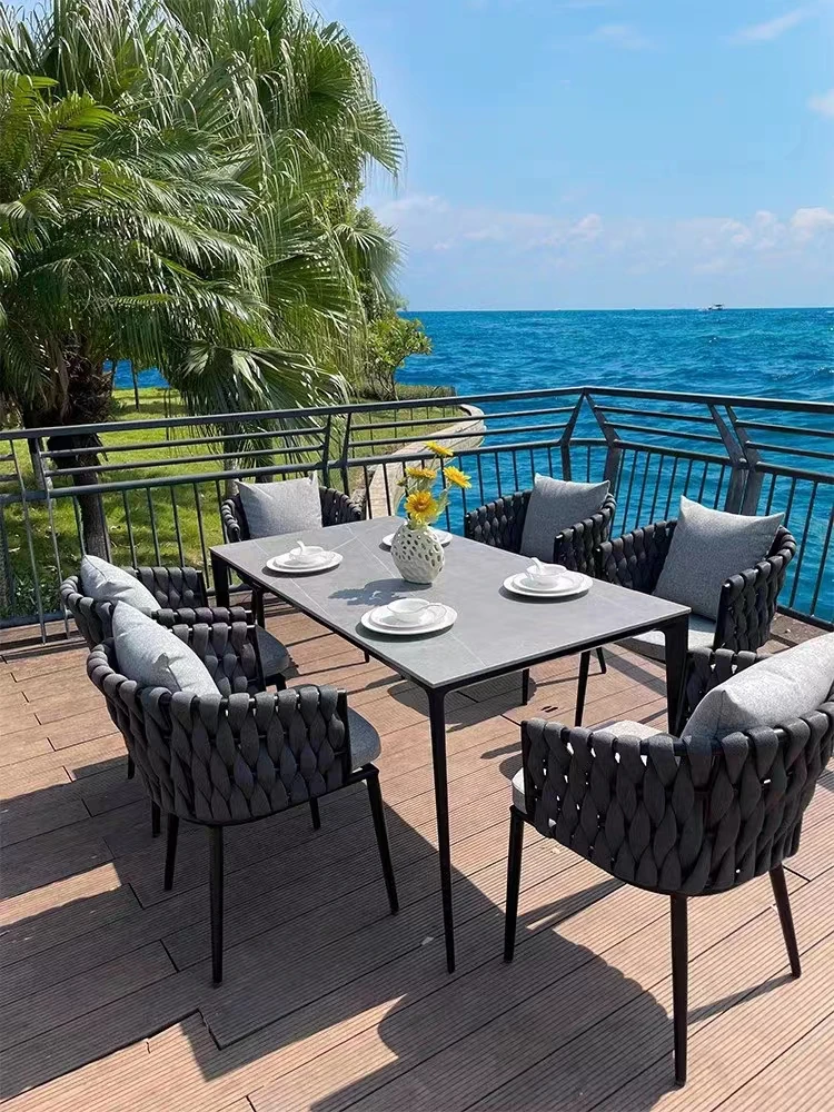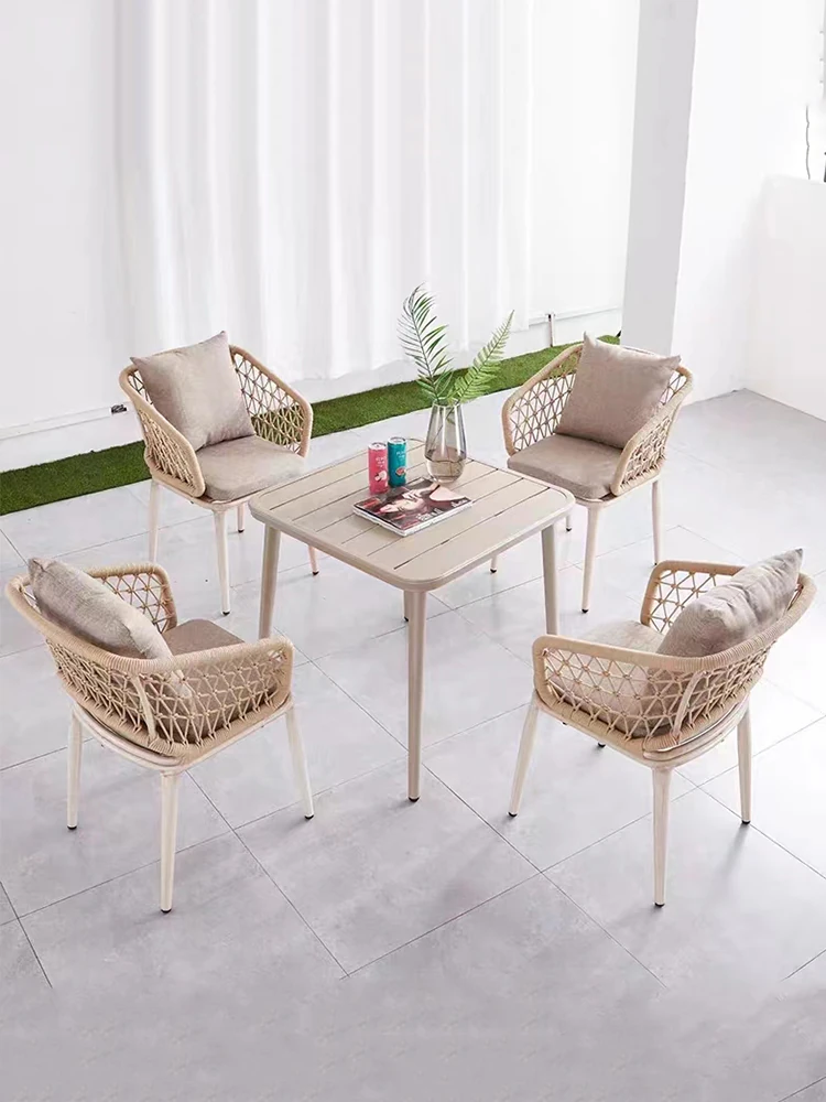 北欧風シンプルアウトドアラタン編みパティオプラスチックアルミ製露天バルコニー小さなガーデンリラックス岩板ダイニングテーブルチェア家具セット