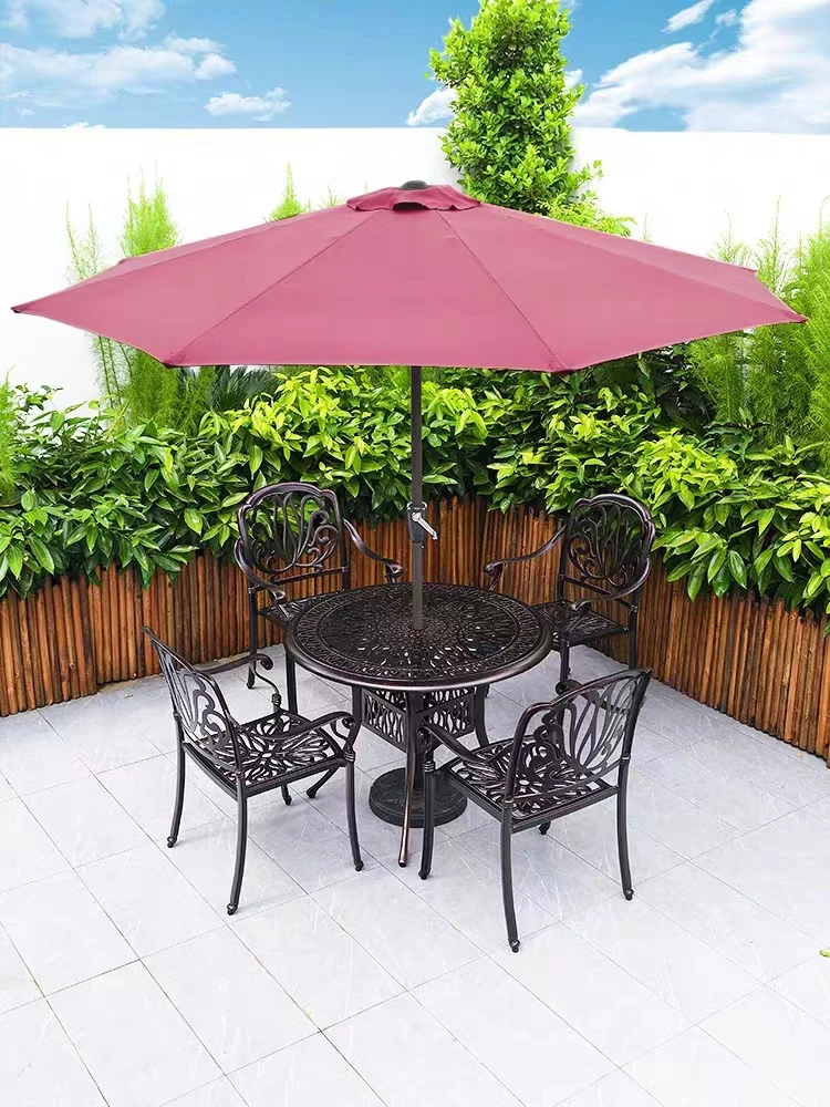 アウトドア別荘庭園用アルミ鋳造テーブル&チェアセット - おしゃれで耐久性抜群!屋外ガーデンやバルコニーにぴったりのヨーロッパスタイルのアイアン家具で、快適なリラックスタイムをお楽しみください。