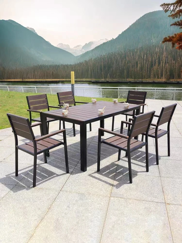 防水・防晒・防腐のアウトドアプラスチックウッドテーブル&チェア!美しい庭やバルコニーに最適なヴィラ向けの耐久性のあるデザイン。屋外テラスでのリラックスタイムを演出します!