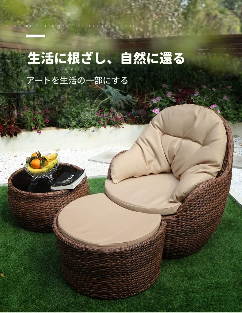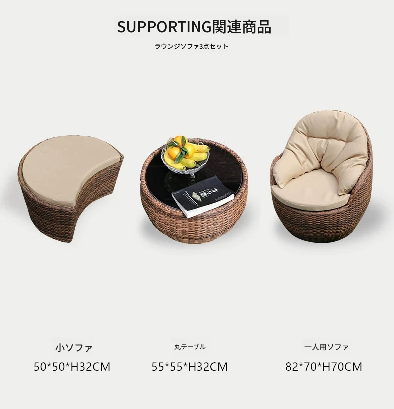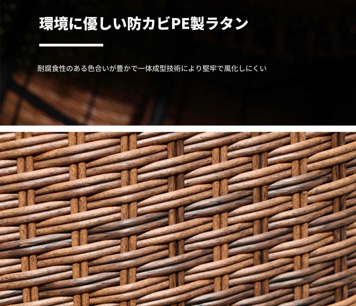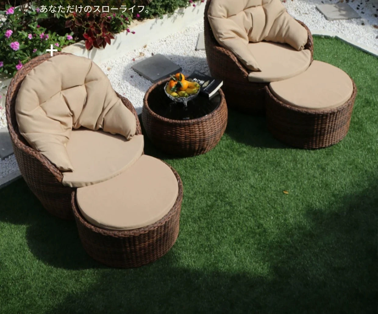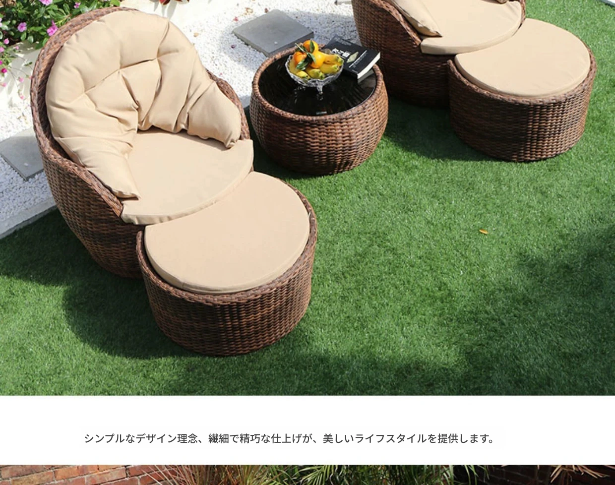 バルコニー用小型ソファ&テーブル3点セット - おしゃれなラタン製ソファとテーブルで、リラックスできる空間を演出!狭いお部屋やテラスにぴったりのコンパクトデザイン。