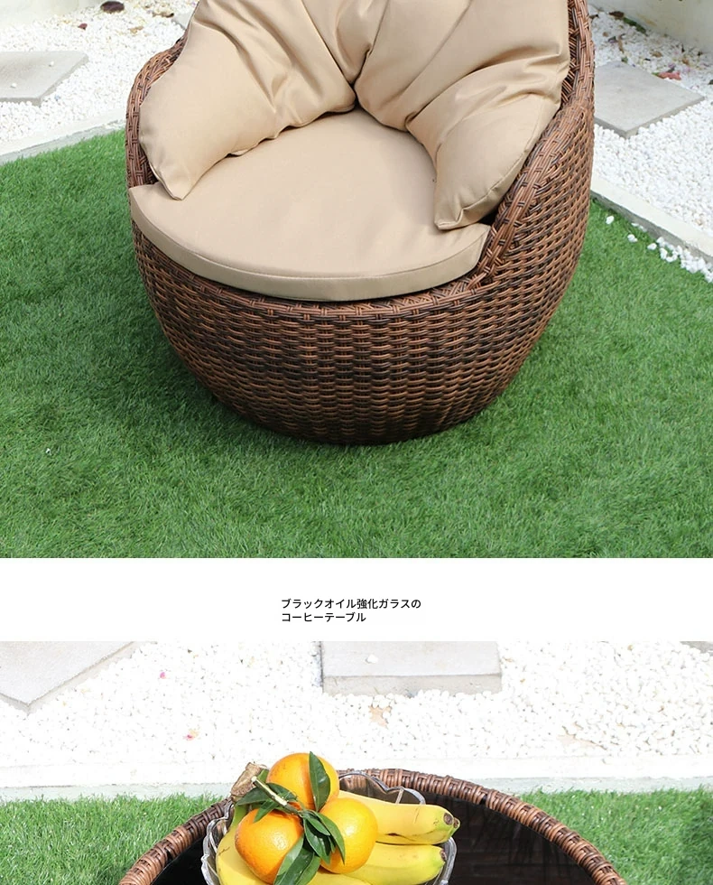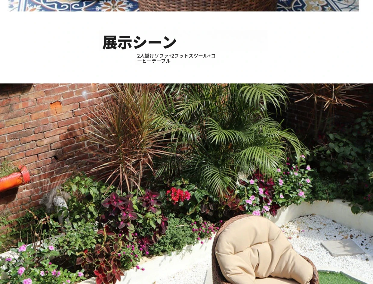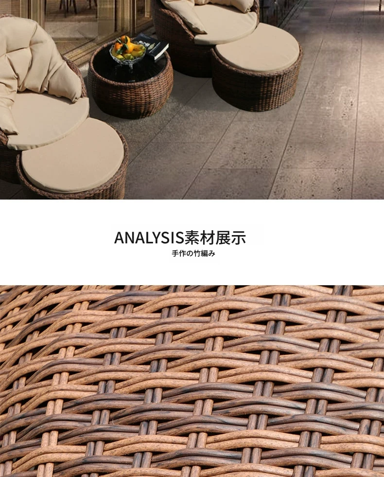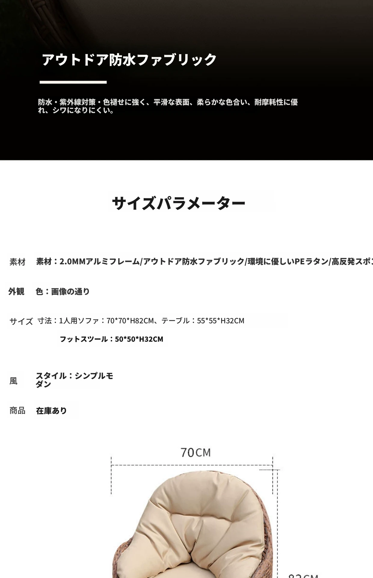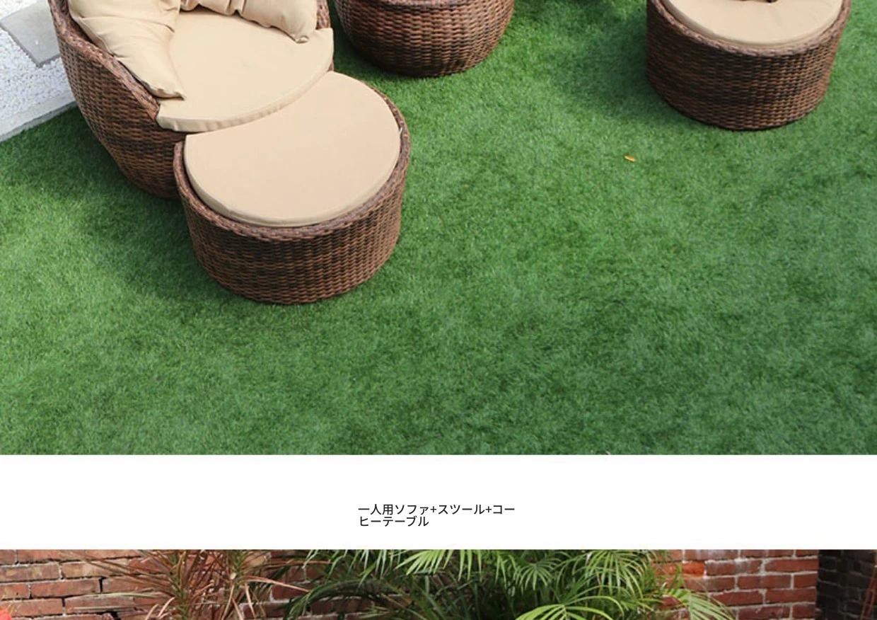 バルコニー用小型ソファ&テーブル3点セット - おしゃれなラタン製ソファとテーブルで、リラックスできる空間を演出!狭いお部屋やテラスにぴったりのコンパクトデザイン。