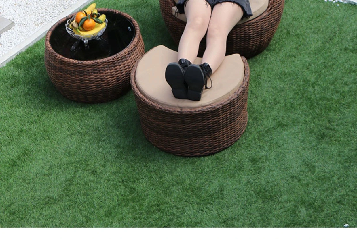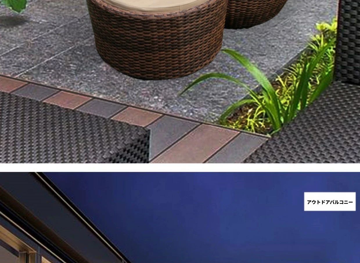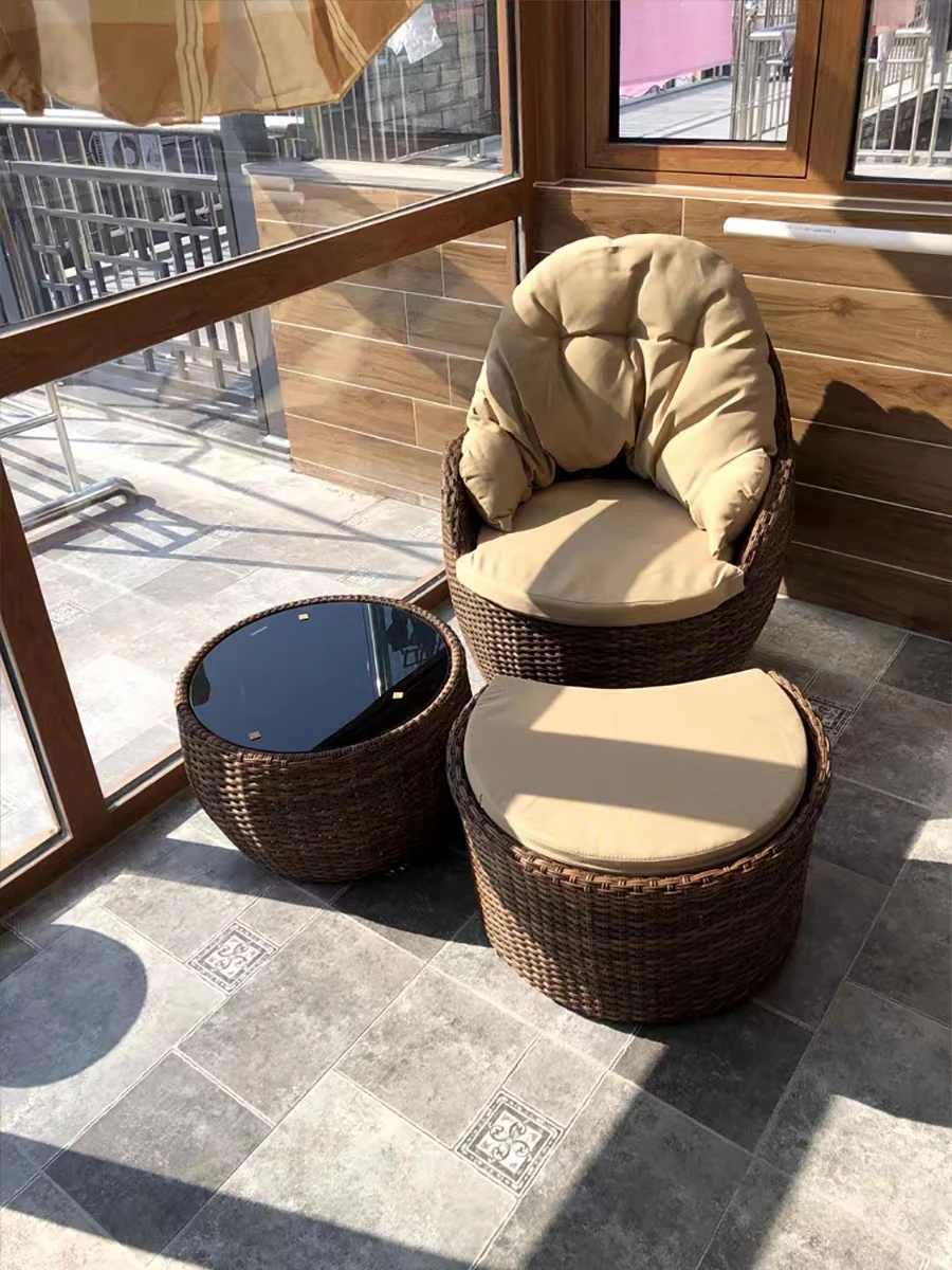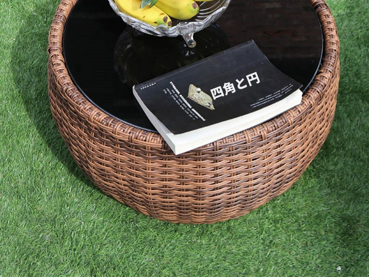 バルコニー用小型ソファ&テーブル3点セット - おしゃれなラタン製ソファとテーブルで、リラックスできる空間を演出!狭いお部屋やテラスにぴったりのコンパクトデザイン。