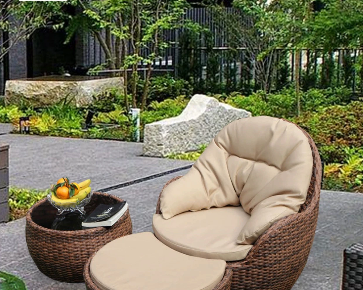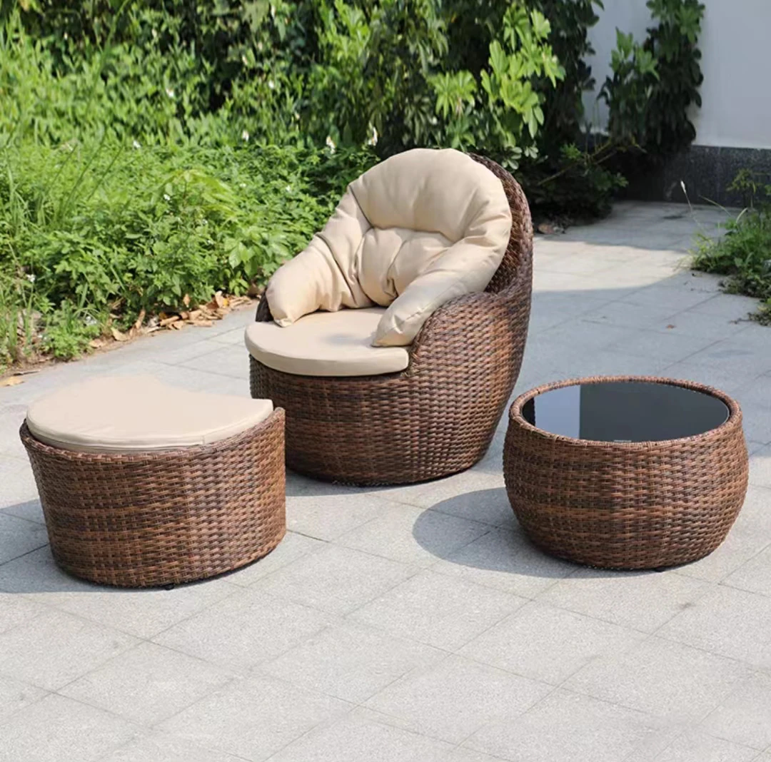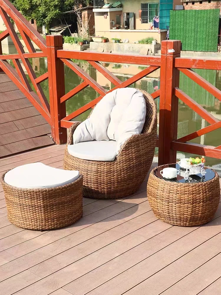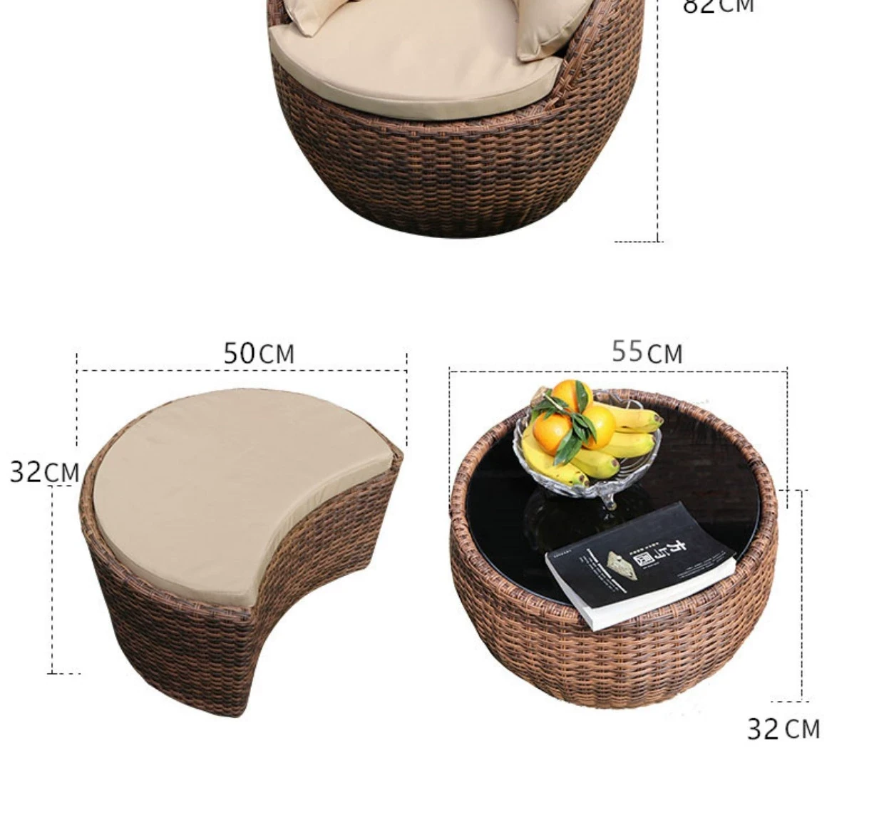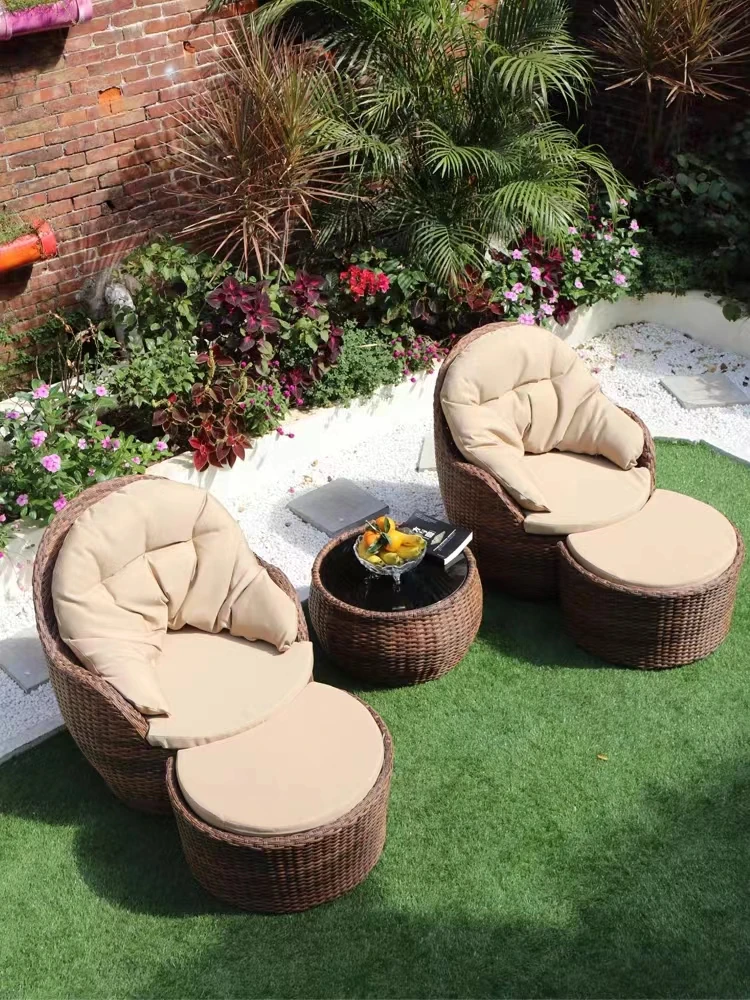 バルコニー用小型ソファ&テーブル3点セット - おしゃれなラタン製ソファとテーブルで、リラックスできる空間を演出!狭いお部屋やテラスにぴったりのコンパクトデザイン。