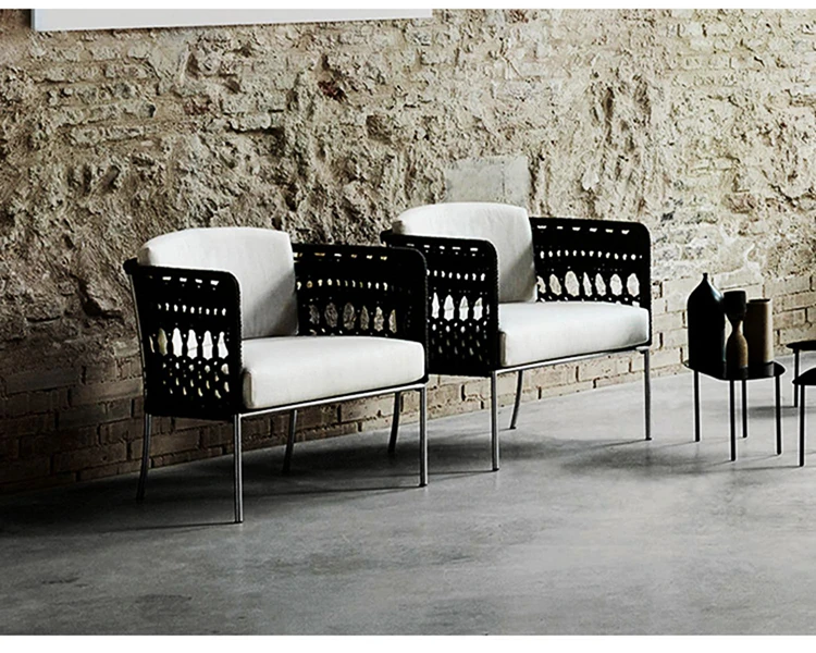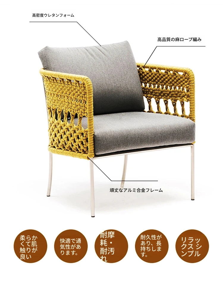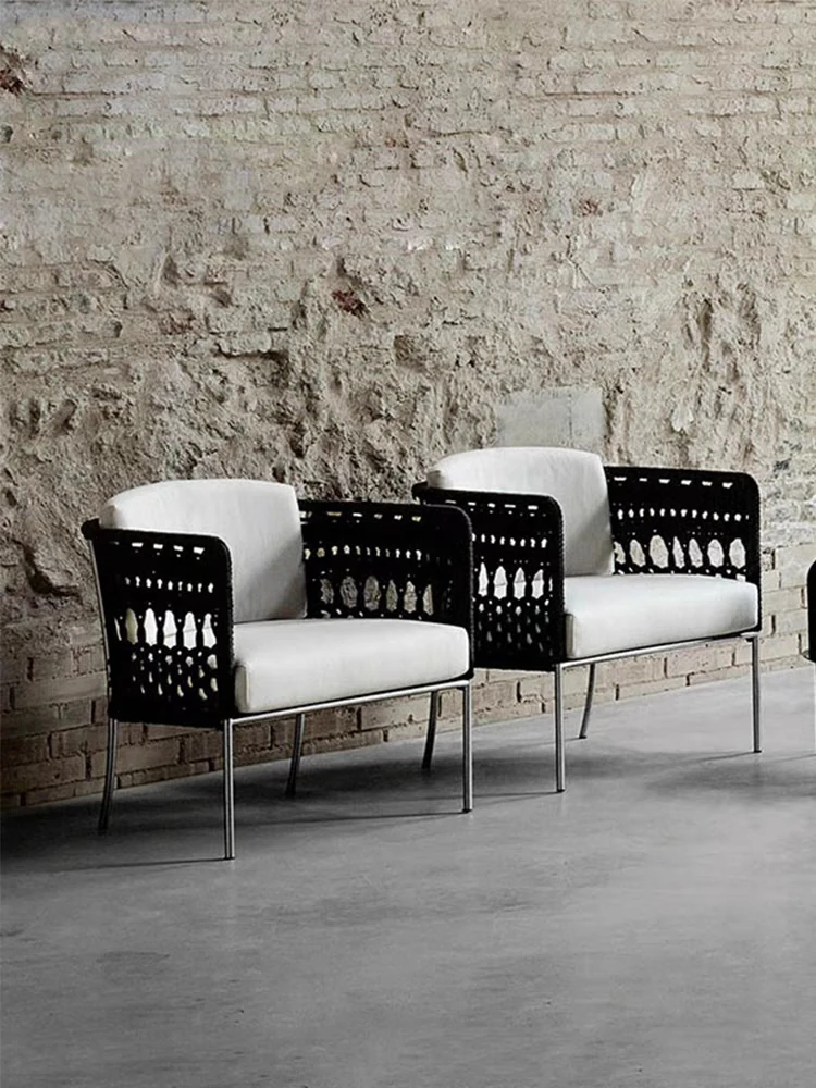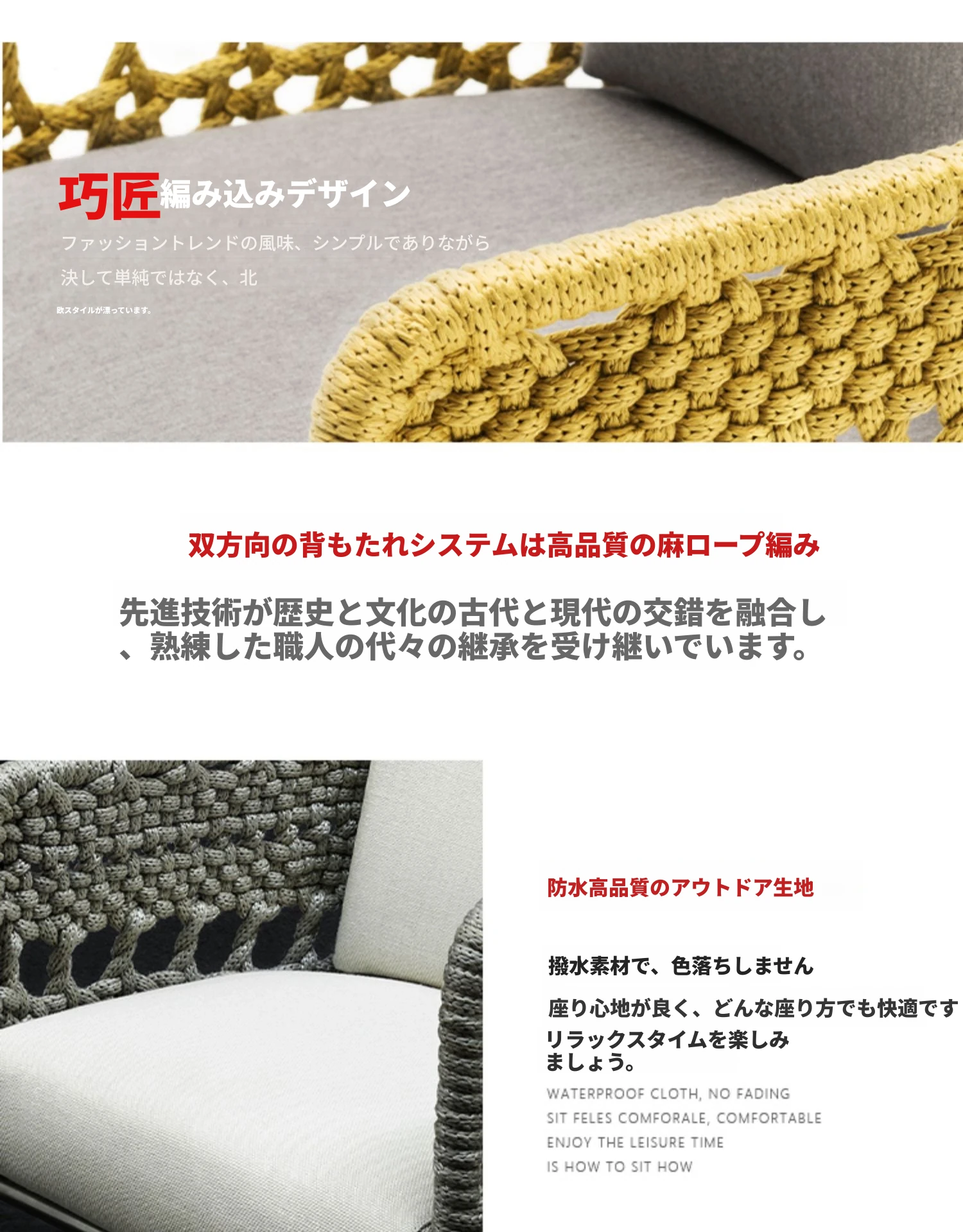 デザイナーが手掛けたアウトドアソファ - おしゃれなバルコニーや庭に最適!リラックスしたひとときを演出する編み込みソファ。ホテルやカフェにもぴったりな、スタイリッシュなガーデンファニチャー。