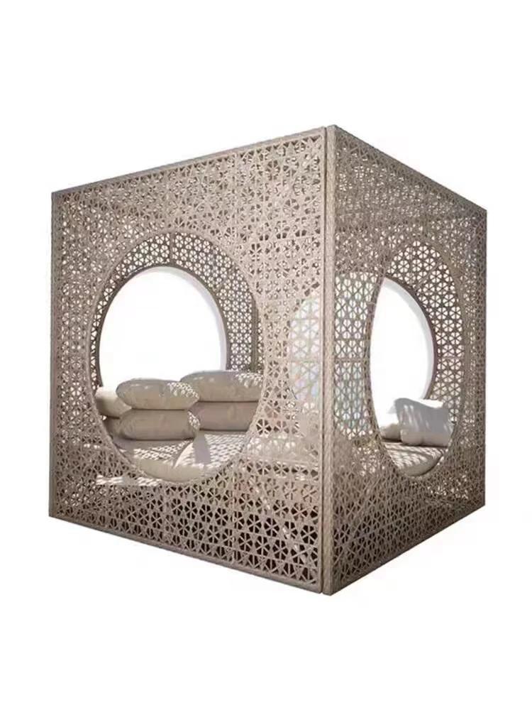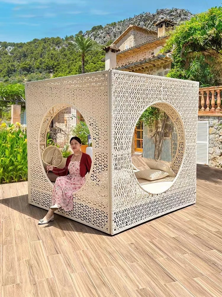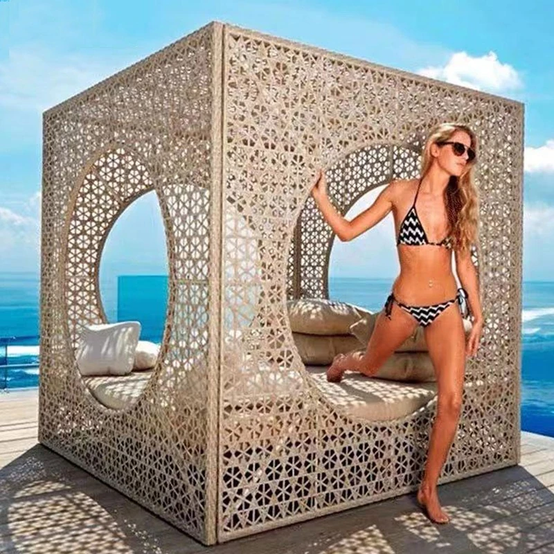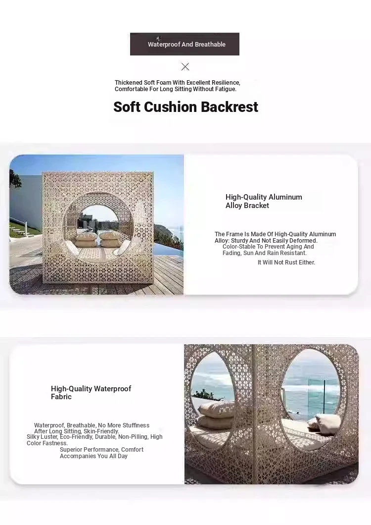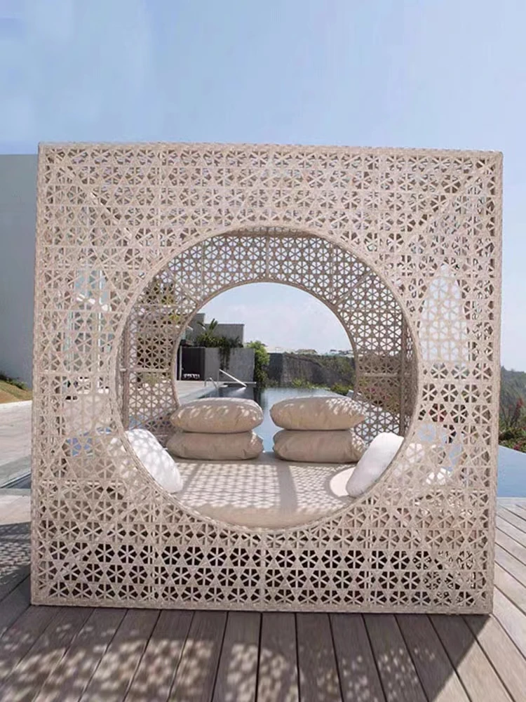 北欧スタイルのアウトドアラウンジベッド - プールサイドやバルコニーに最適な藤編みソファ!リラックスできる鳥の巣のようなデザインで、庭やビーチにぴったりのテラス家具です。