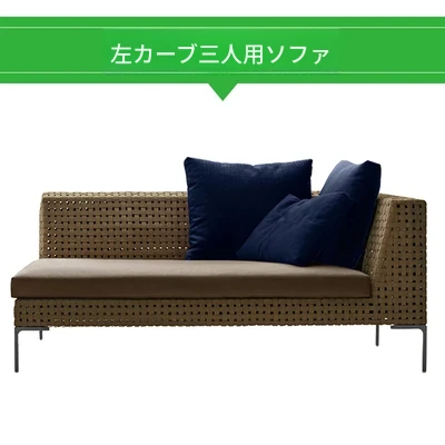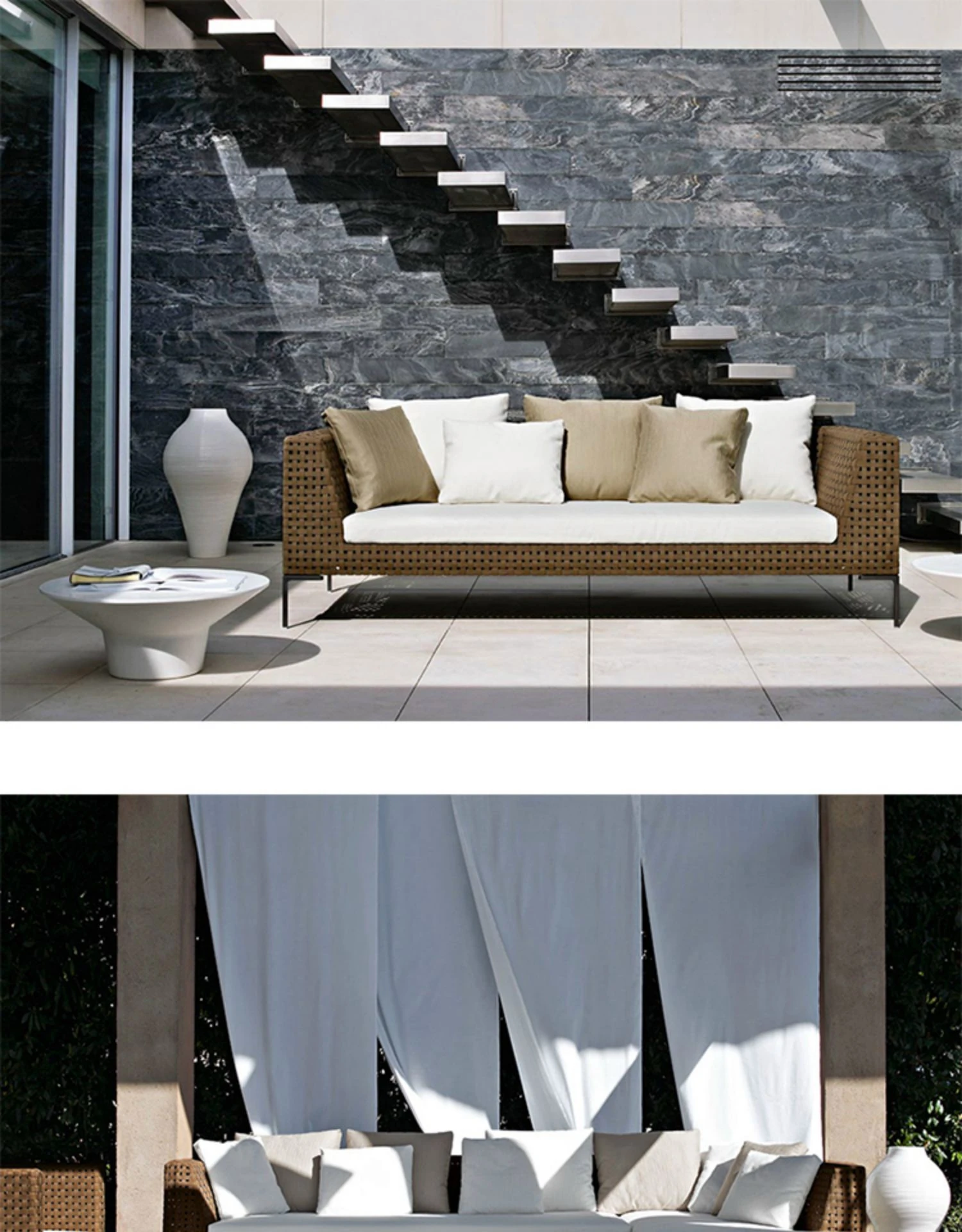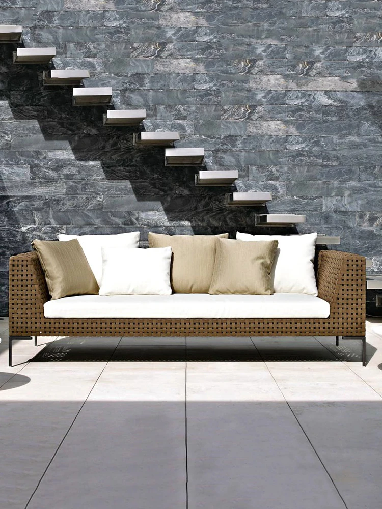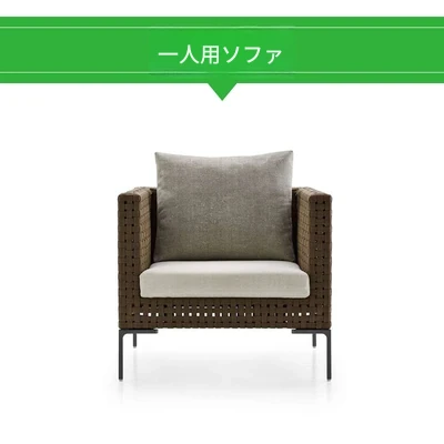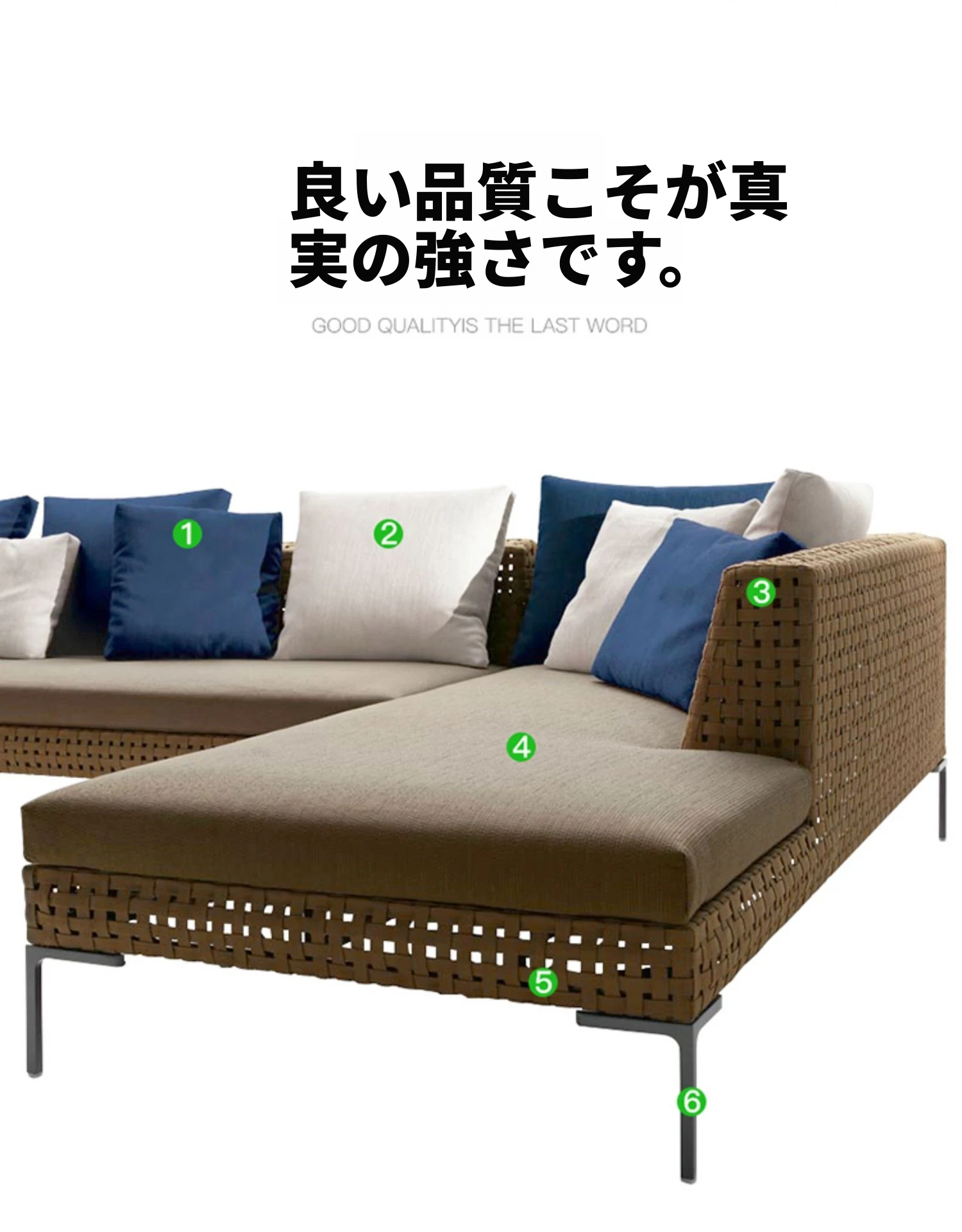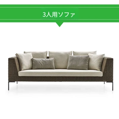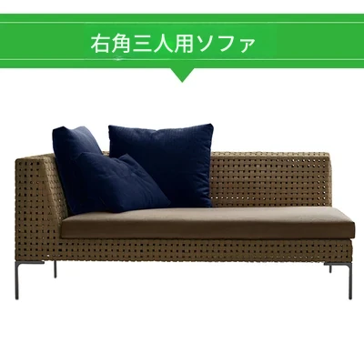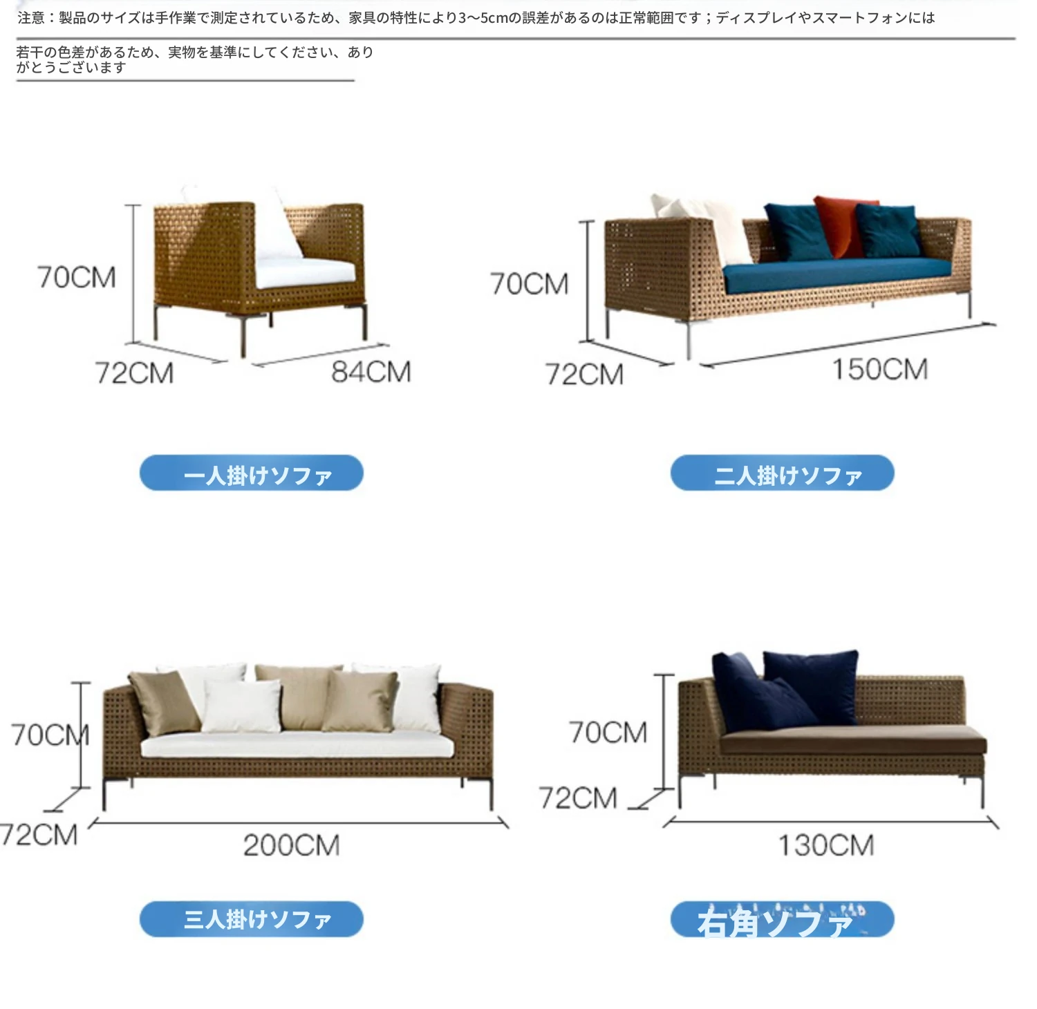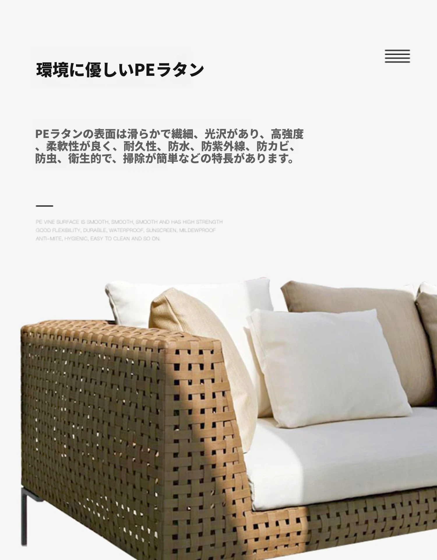 北欧スタイルのアウトドアラタンソファセット - 屋外庭園にぴったりなリラックスチェア、室内外兼用の三人掛けソファで、心地よいひとときをお楽しみください!