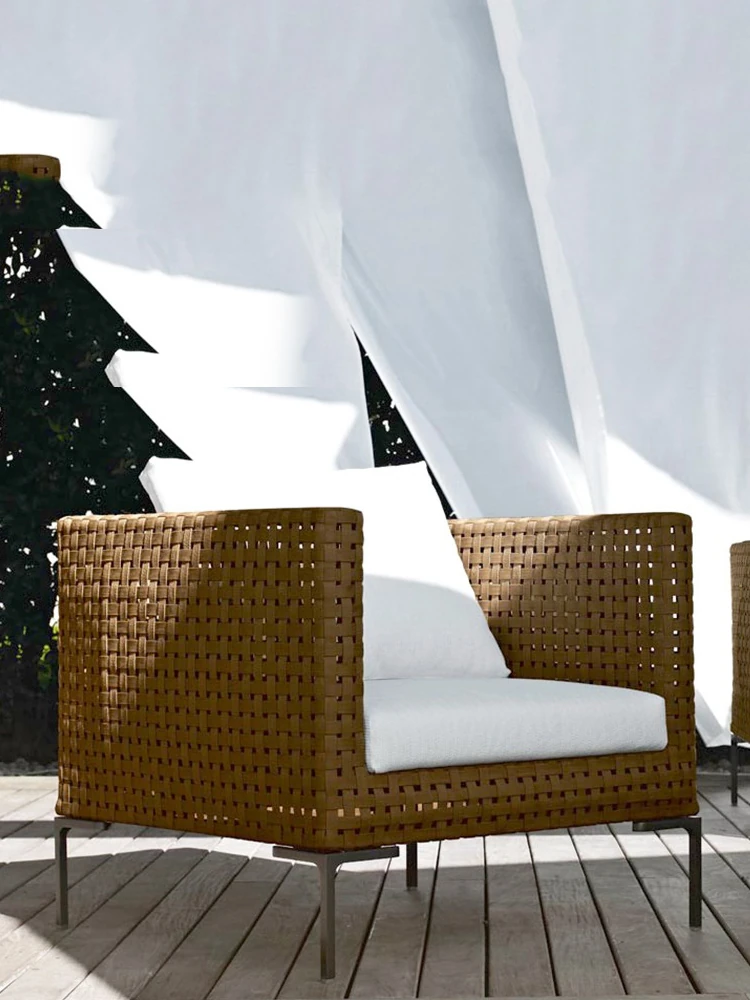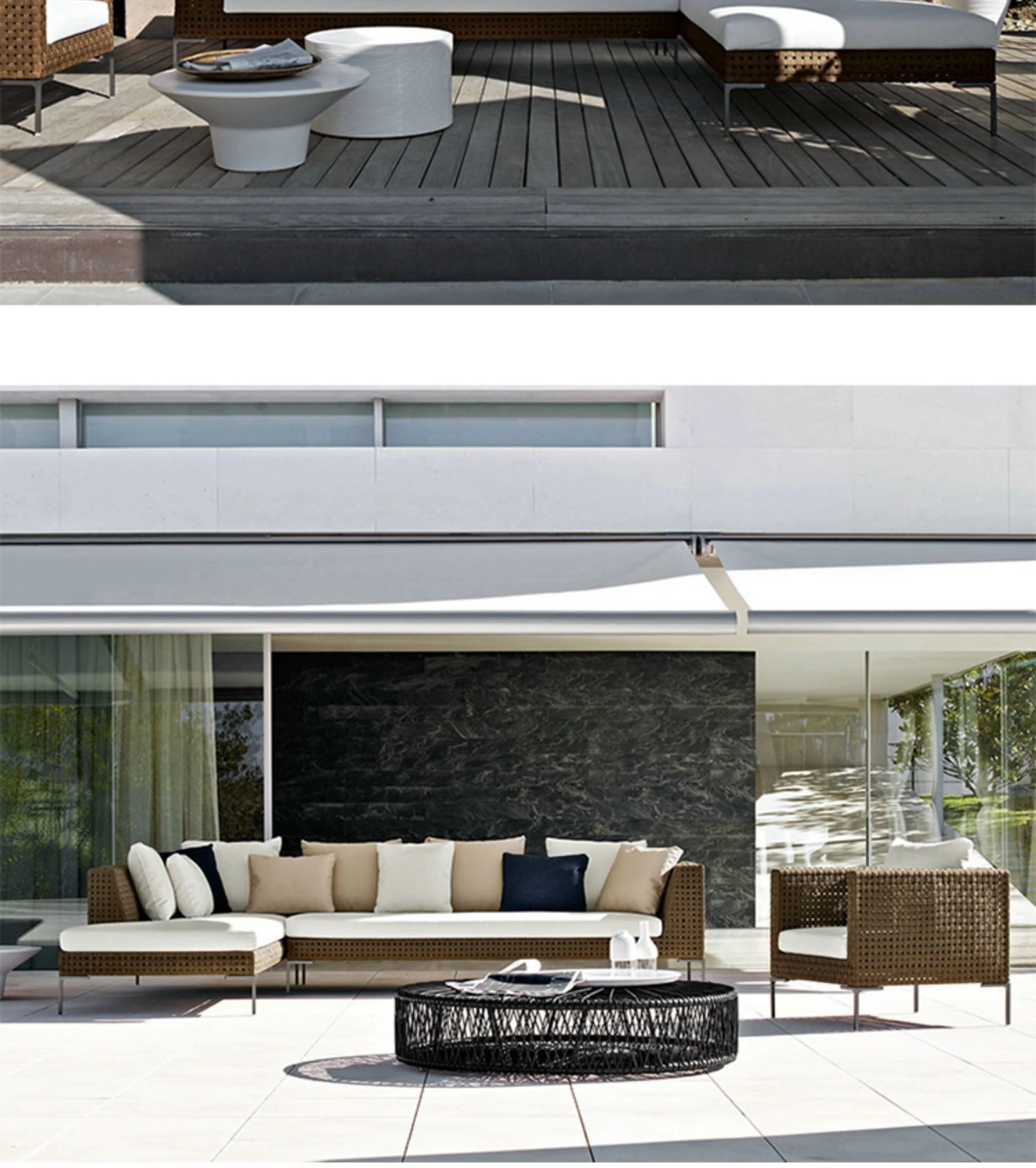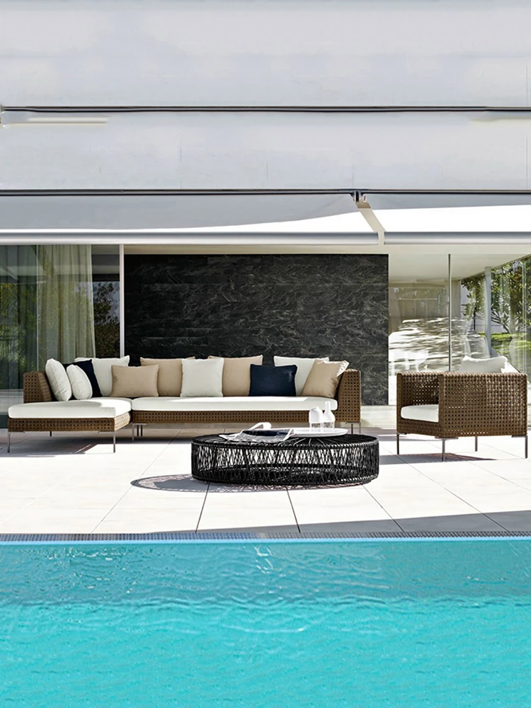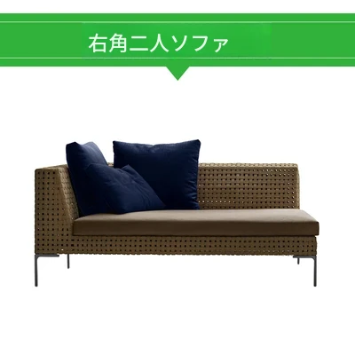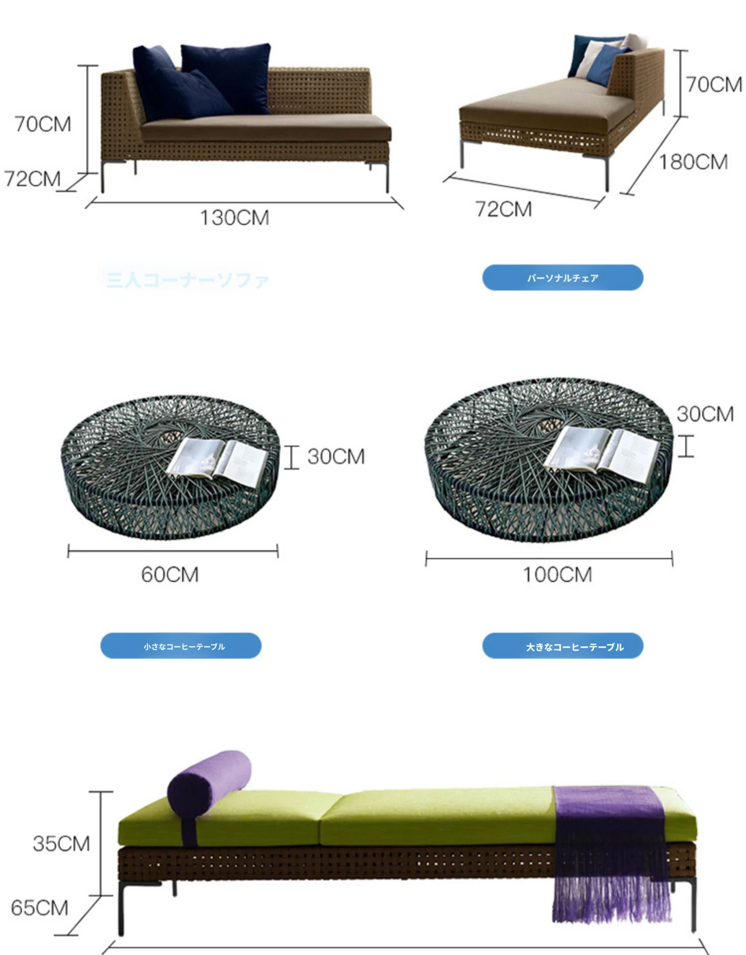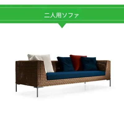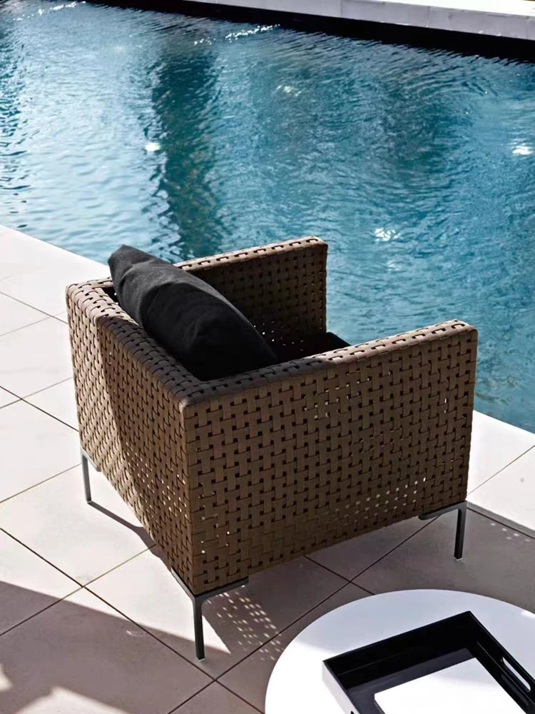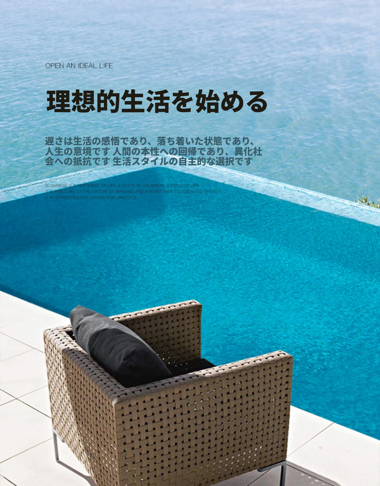 北欧スタイルのアウトドアラタンソファセット - 屋外庭園にぴったりなリラックスチェア、室内外兼用の三人掛けソファで、心地よいひとときをお楽しみください!