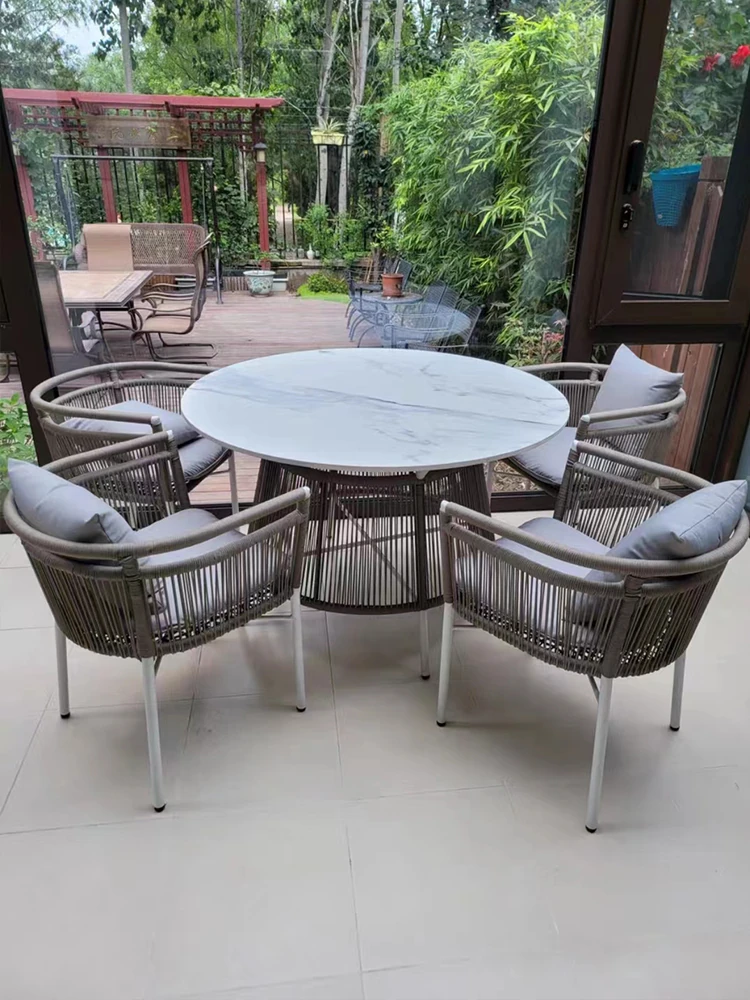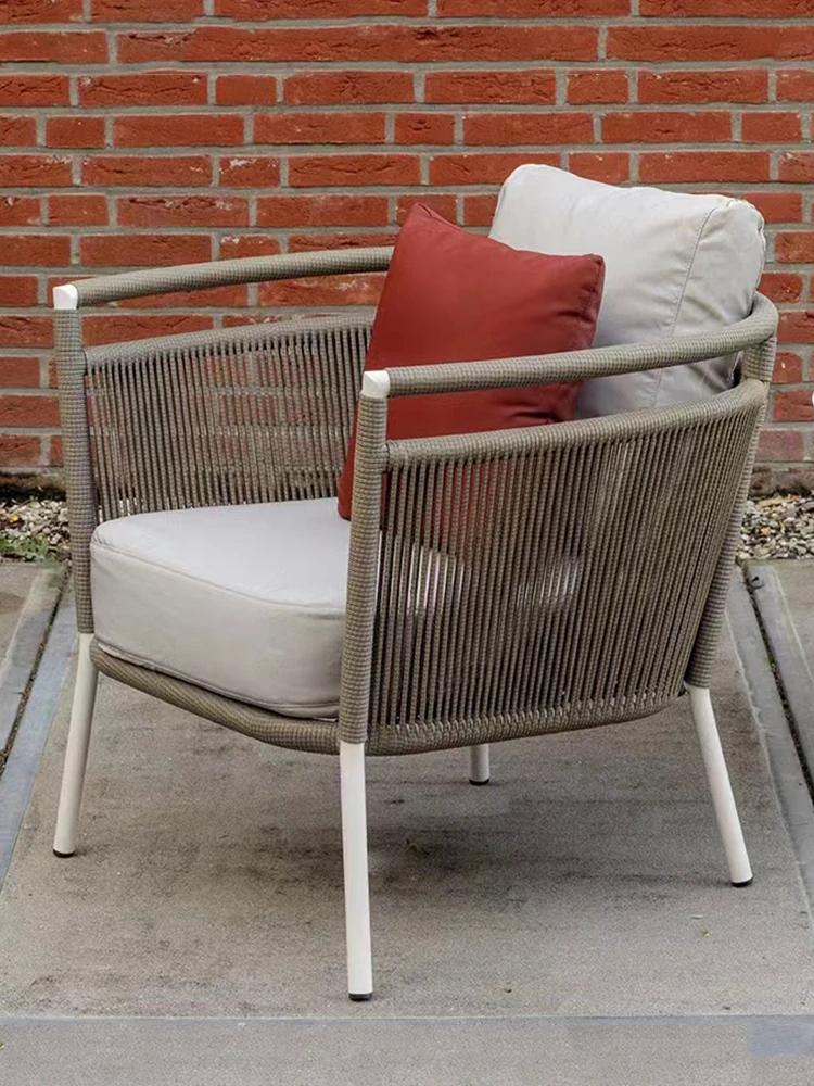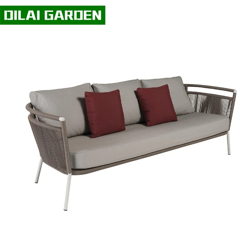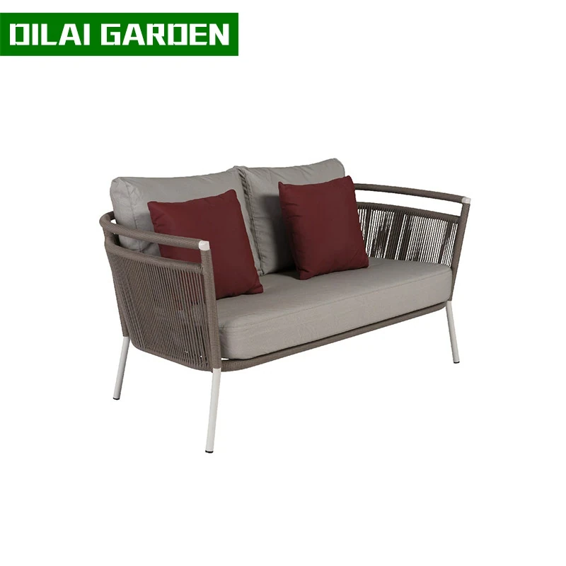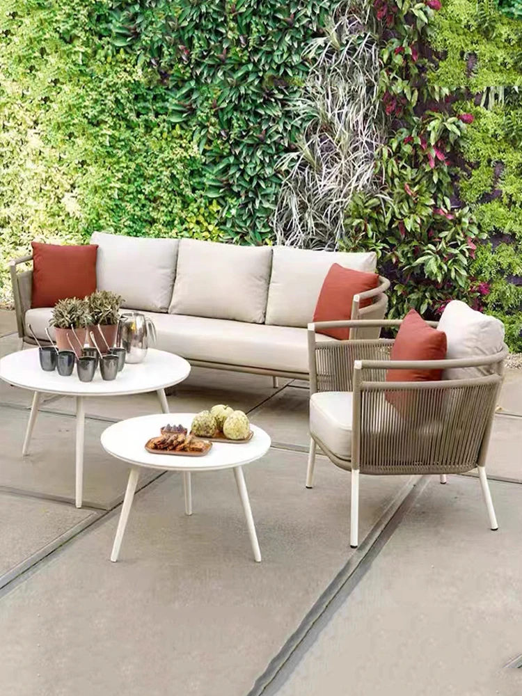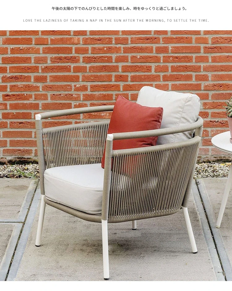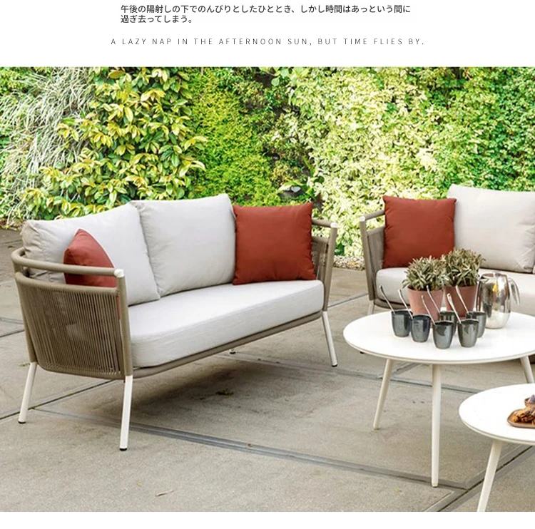 北欧スタイルのアウトドアラタンソファと小型テーブルのセット - シンプルでおしゃれなリビング、ガーデン、バルコニーに最適なくつろぎの家具!