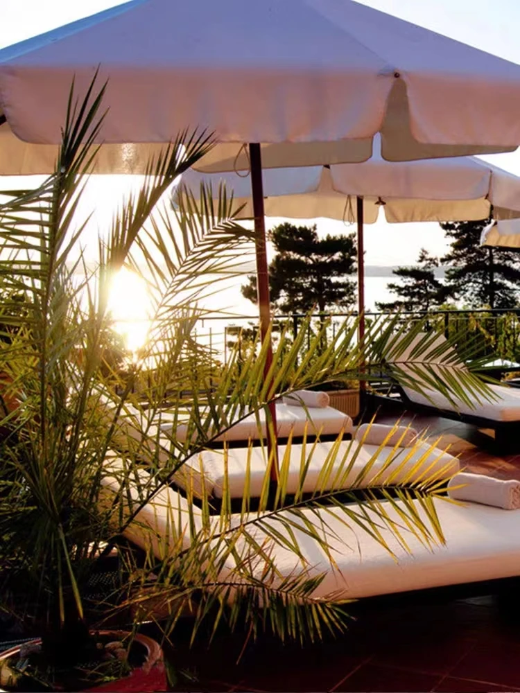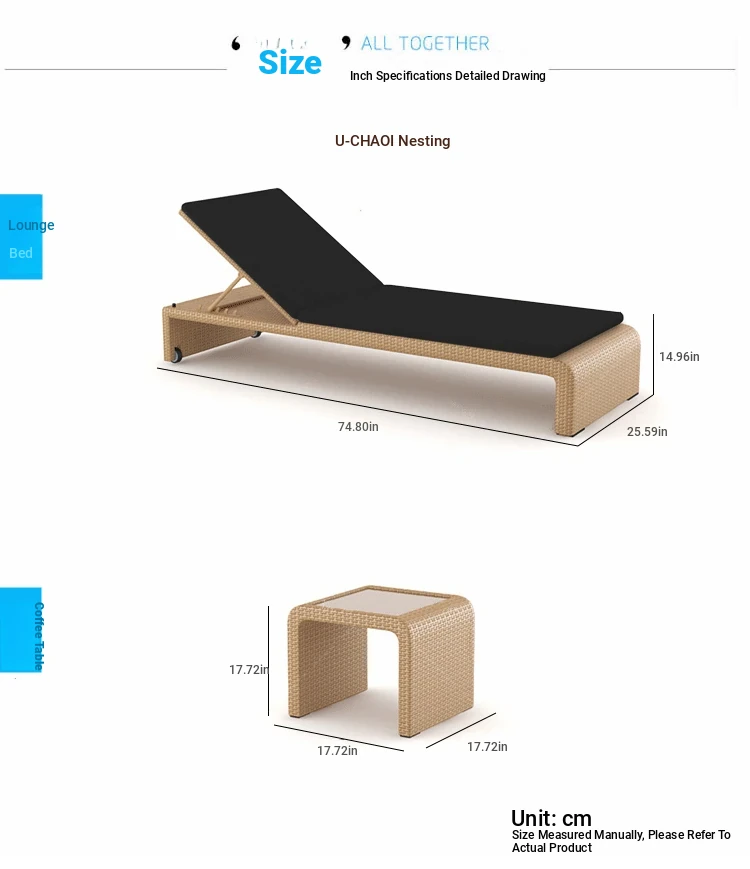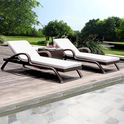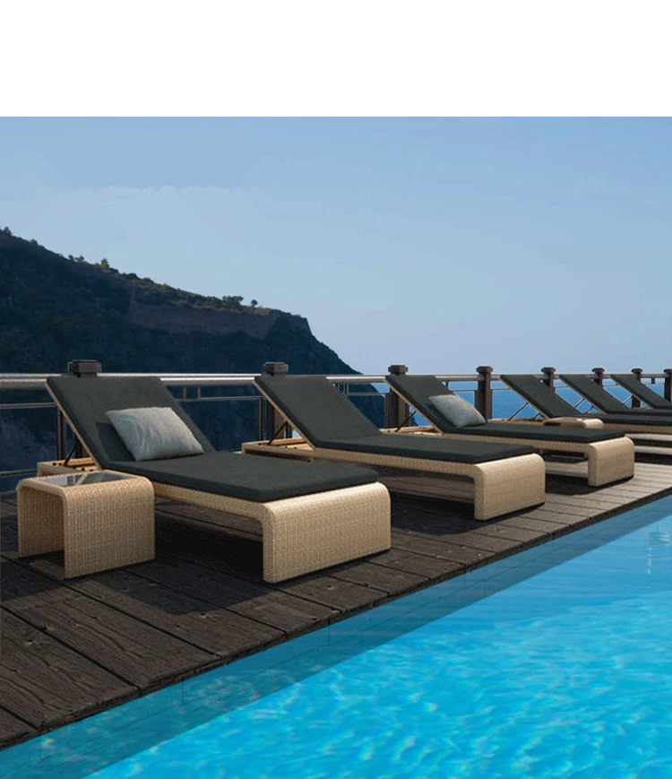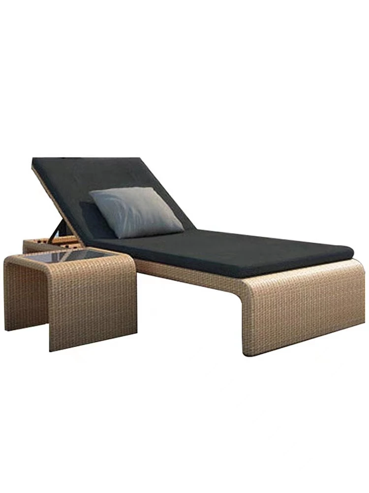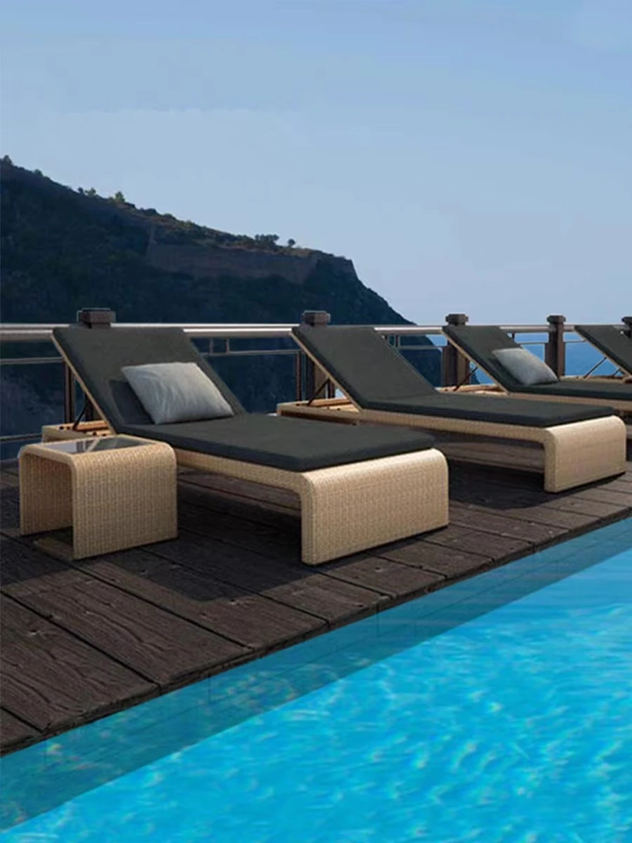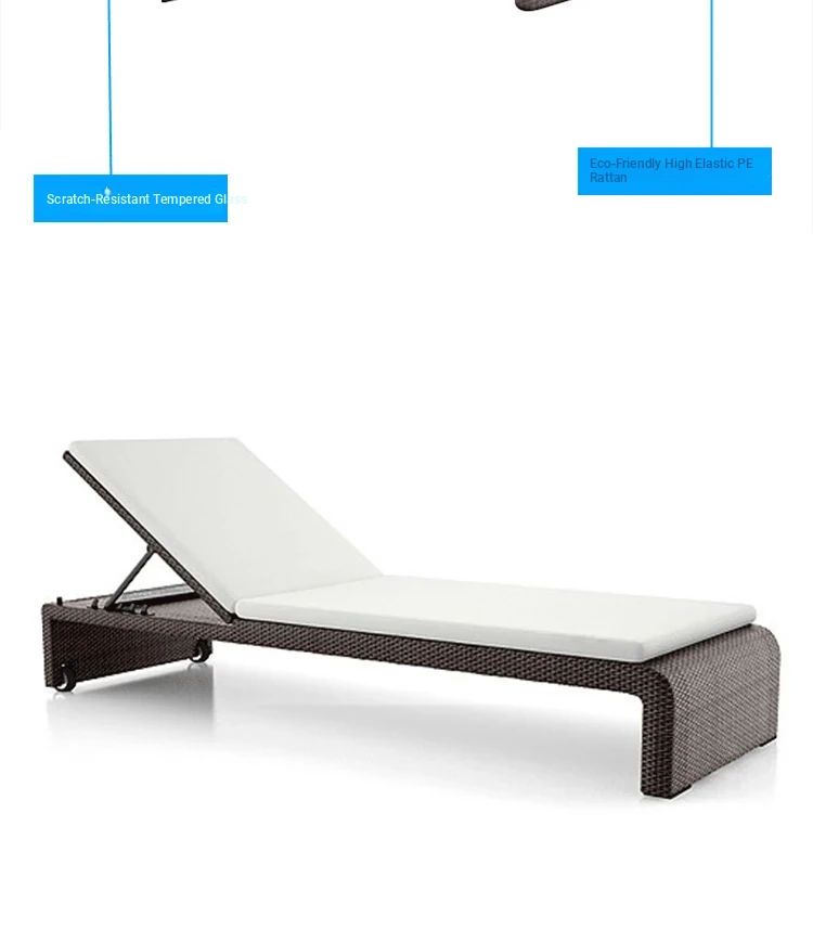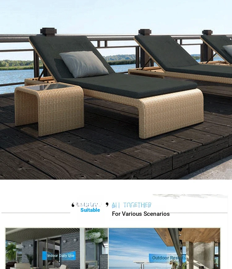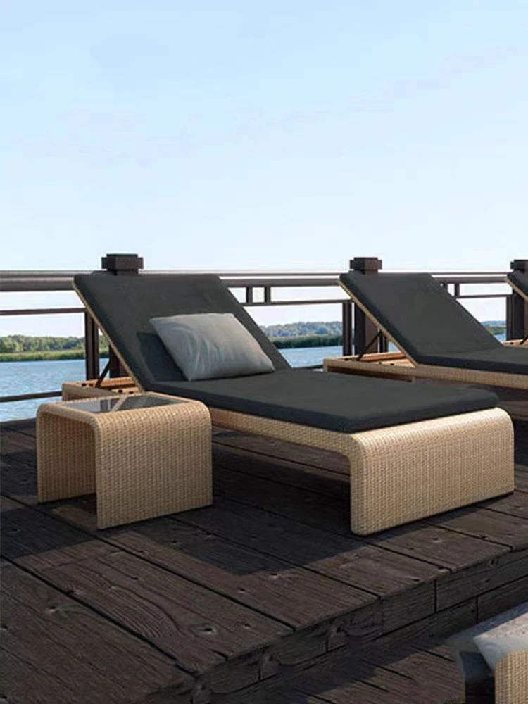 リラックスできるアウトドアチェア - テラスやバルコニーに最適なラタン製のリクライニングベッド!ビーチチェアやプールサイド、スパリゾートにもぴったり。心地よいひとときをお楽しみください。