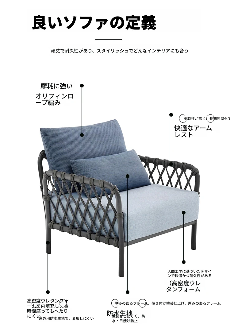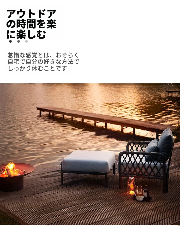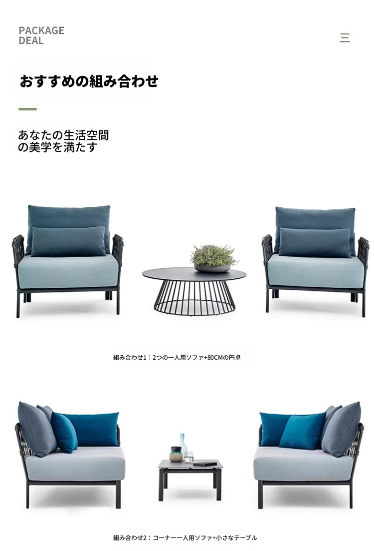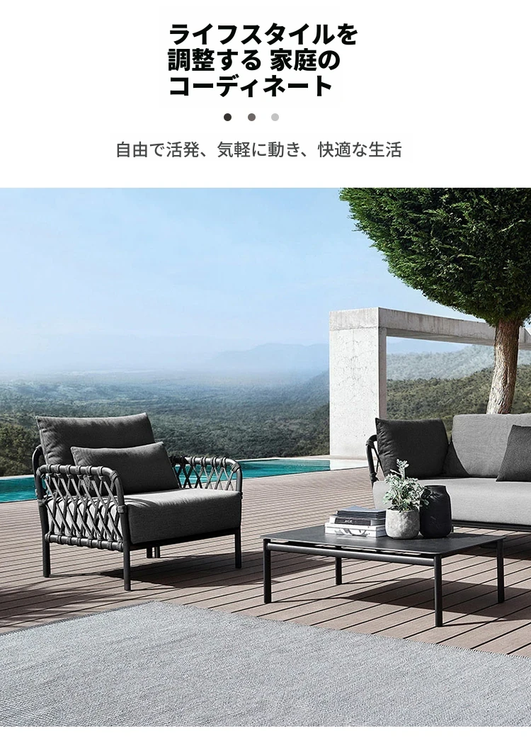 アウトドアソファー リラックス用パティオセット!ホテルスタイルのラタンチェアとコーヒーテーブルのコンビネーション。サンルームやガーデン、別荘にぴったりのスタイリッシュなラタン家具で、快適なひとときをお楽しみください!