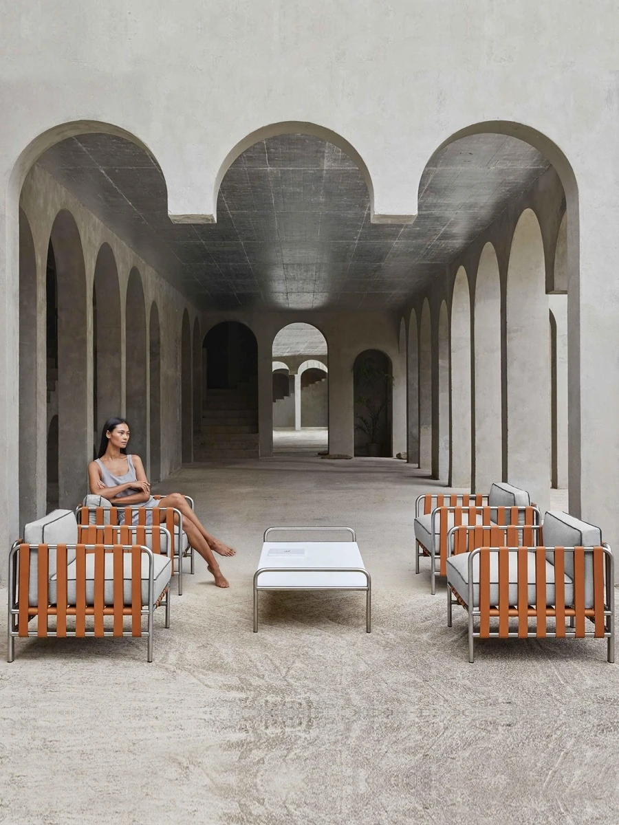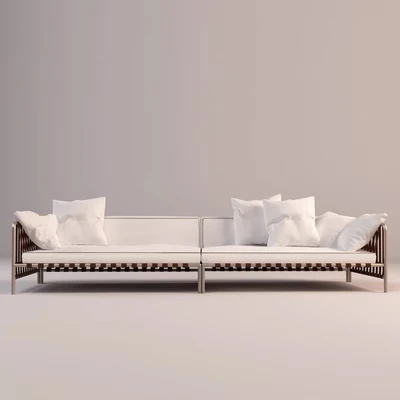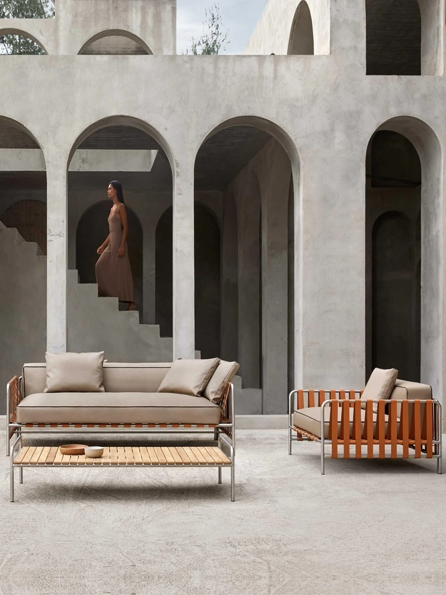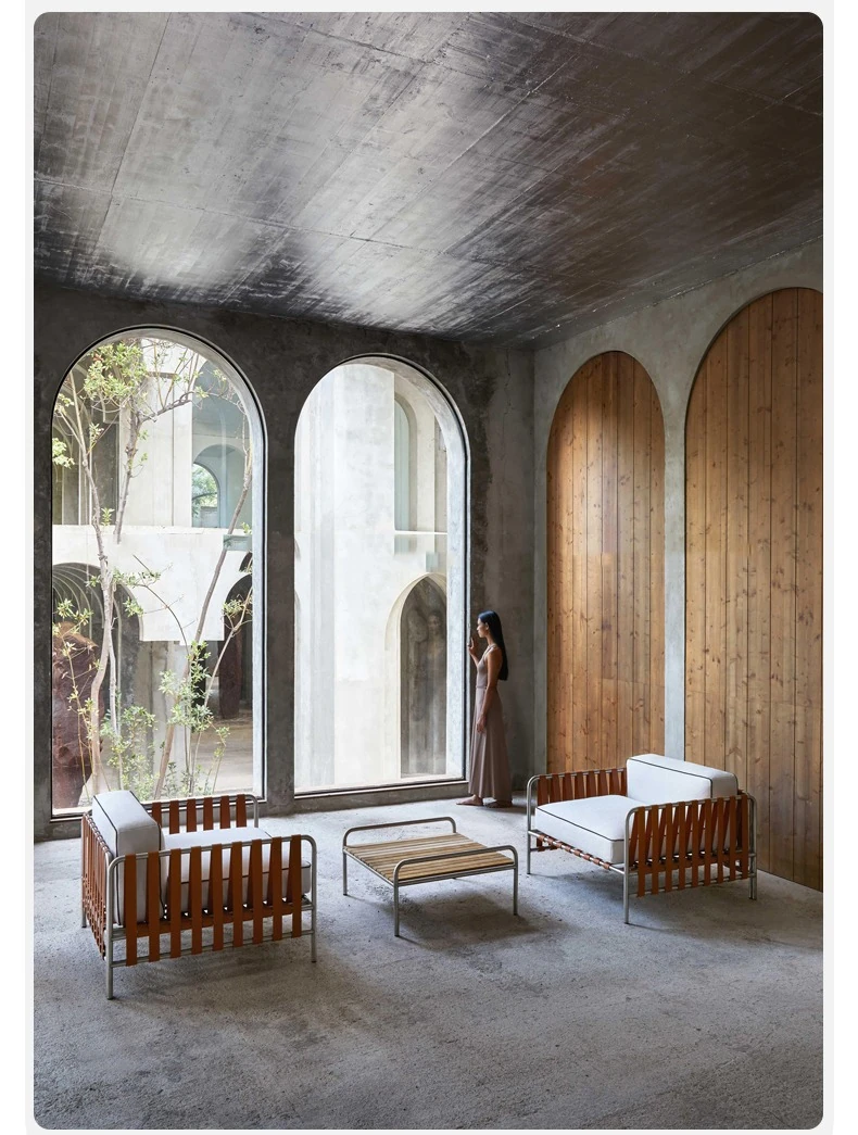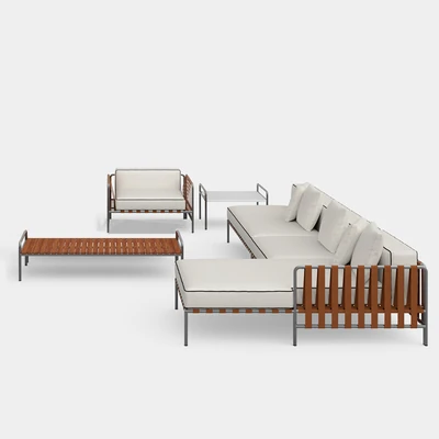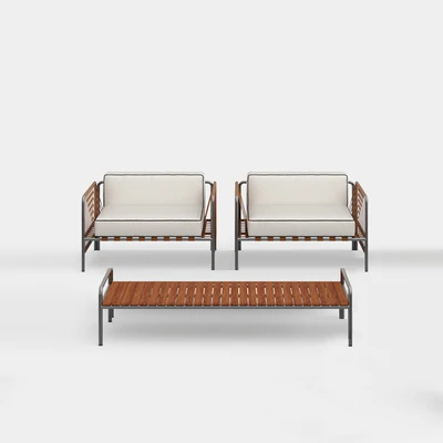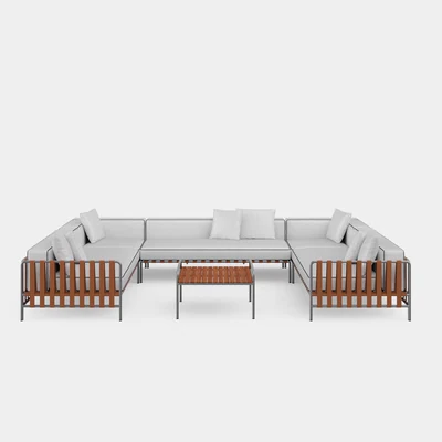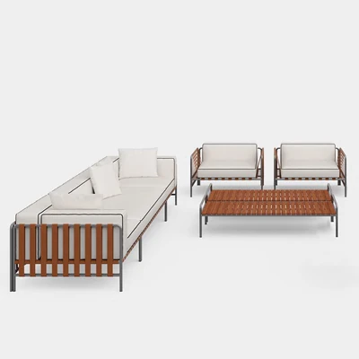 二人用ソファ+大フットスツール+チーク材のコーヒーテーブル