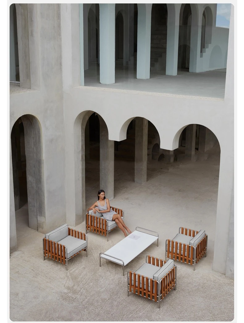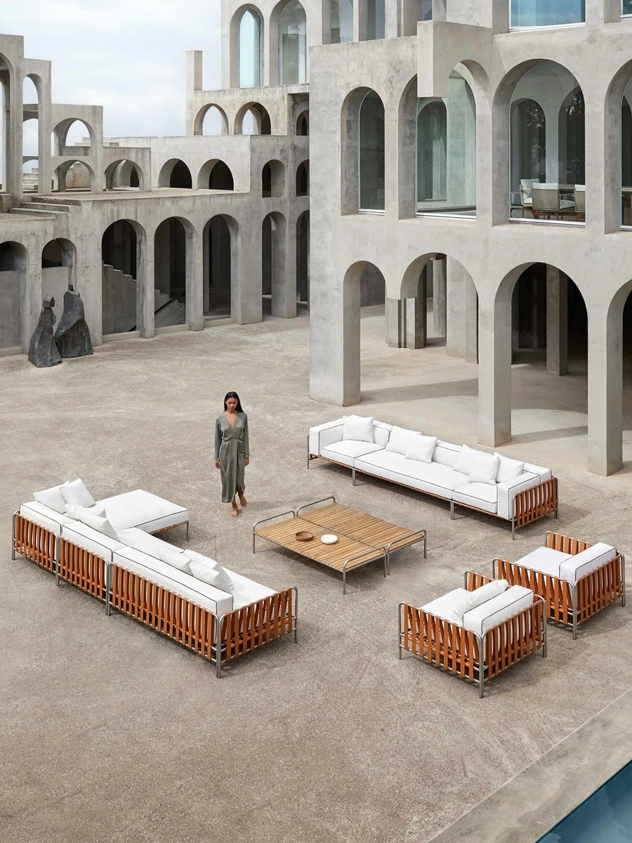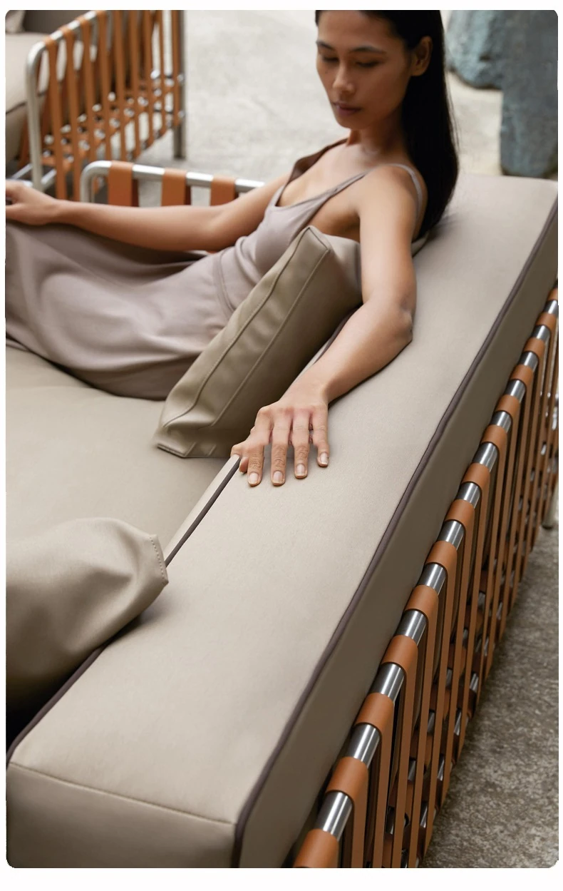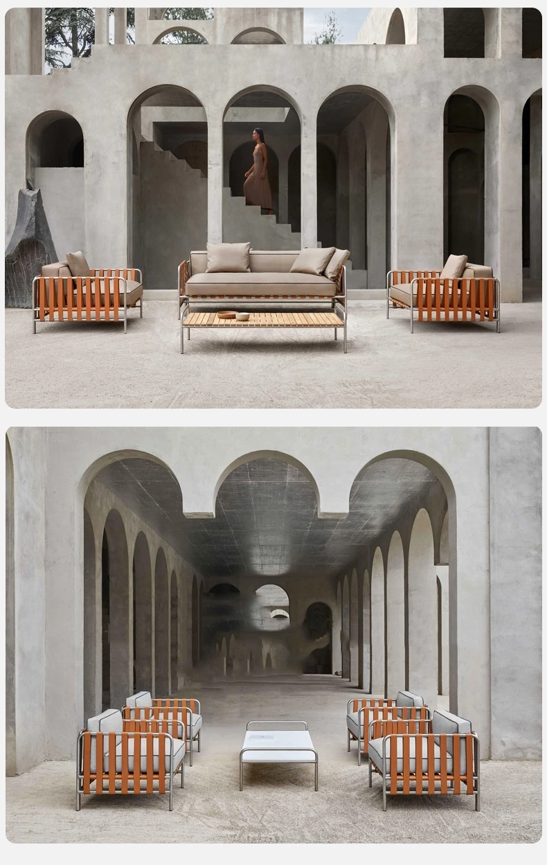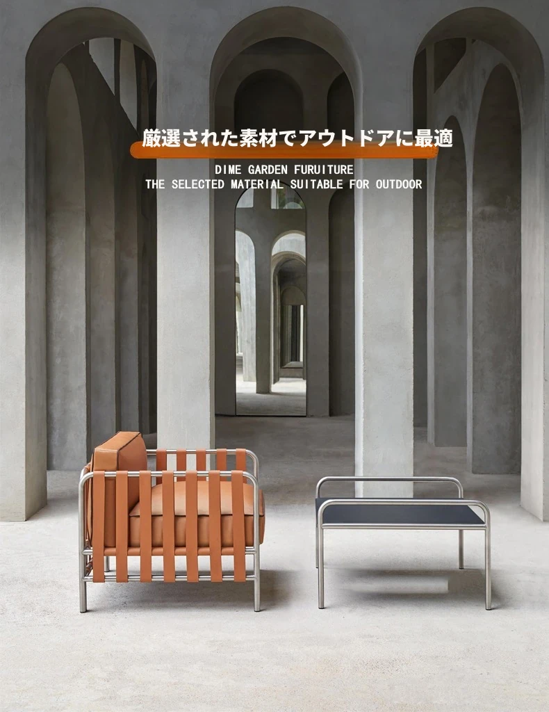 アウトドア防水・UVカットステンレス製ヴィラ風ラタンソファセット!シンプルでスタイリッシュな庭やバルコニーにぴったりの家具、テーブルとソファのコンビネーションで、快適なリラックスタイムをお楽しみください!