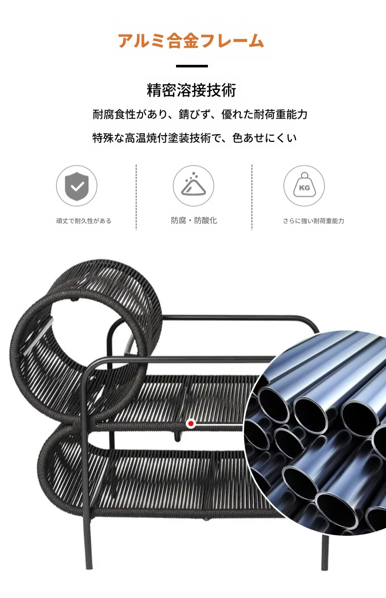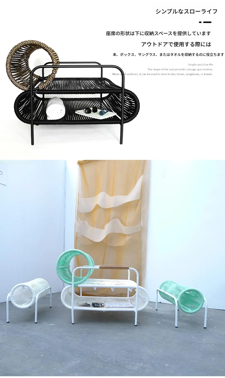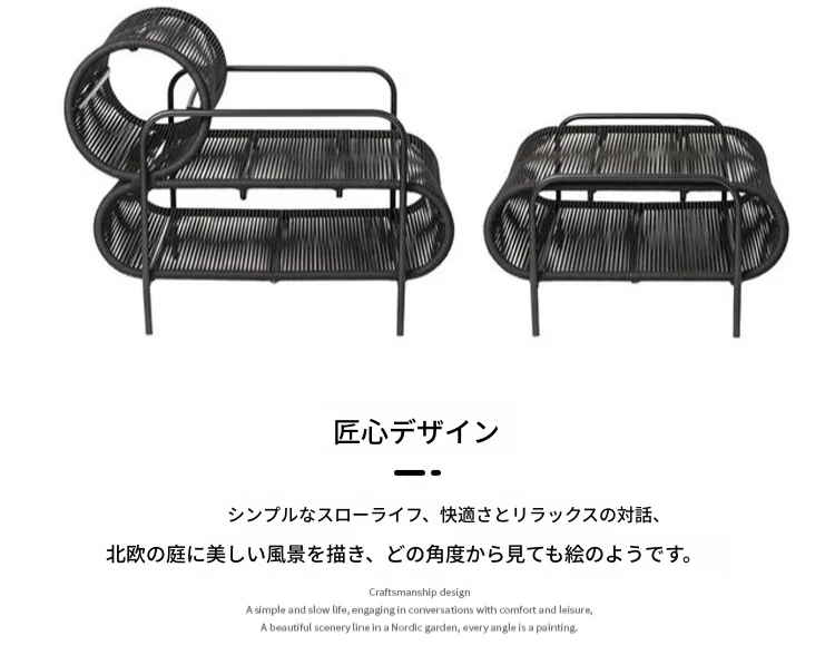 リラックスできる藤編みソファチェア!バルコニーやガーデンに最適な創造的な3点セット。日差しの下でおしゃれなひとときを楽しめる、シングル向け民宿にもぴったりな家具です!