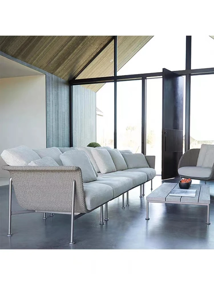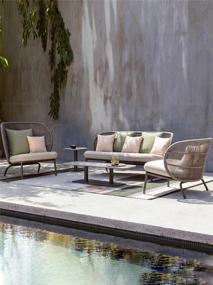 アウトドアソファーセット|庭用ラタン製テーブル&チェア|防水・紫外線対策|北欧スタイルのバルコニー・別荘用リラックス家具|おしゃれで快適なガーデンライフを実現!