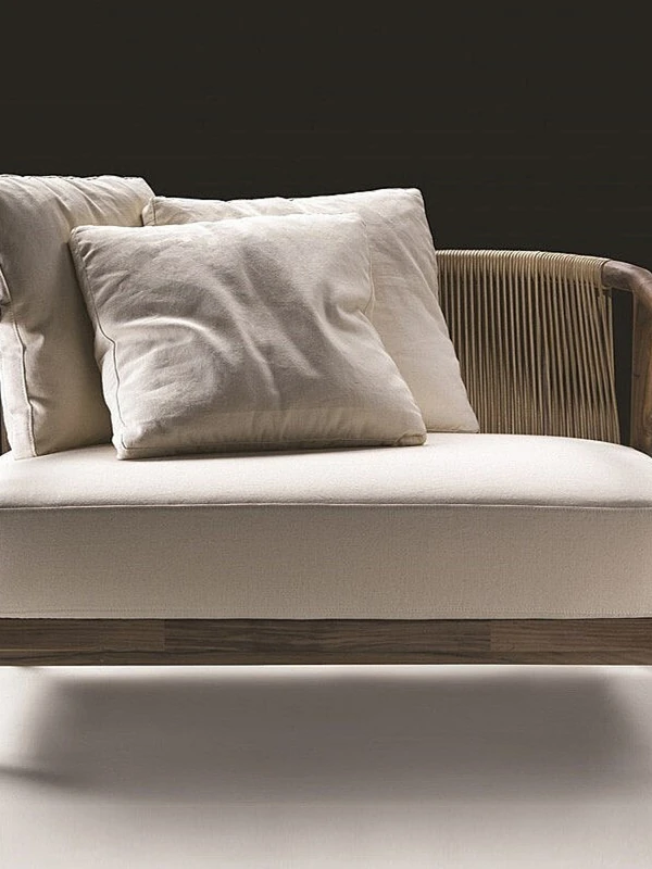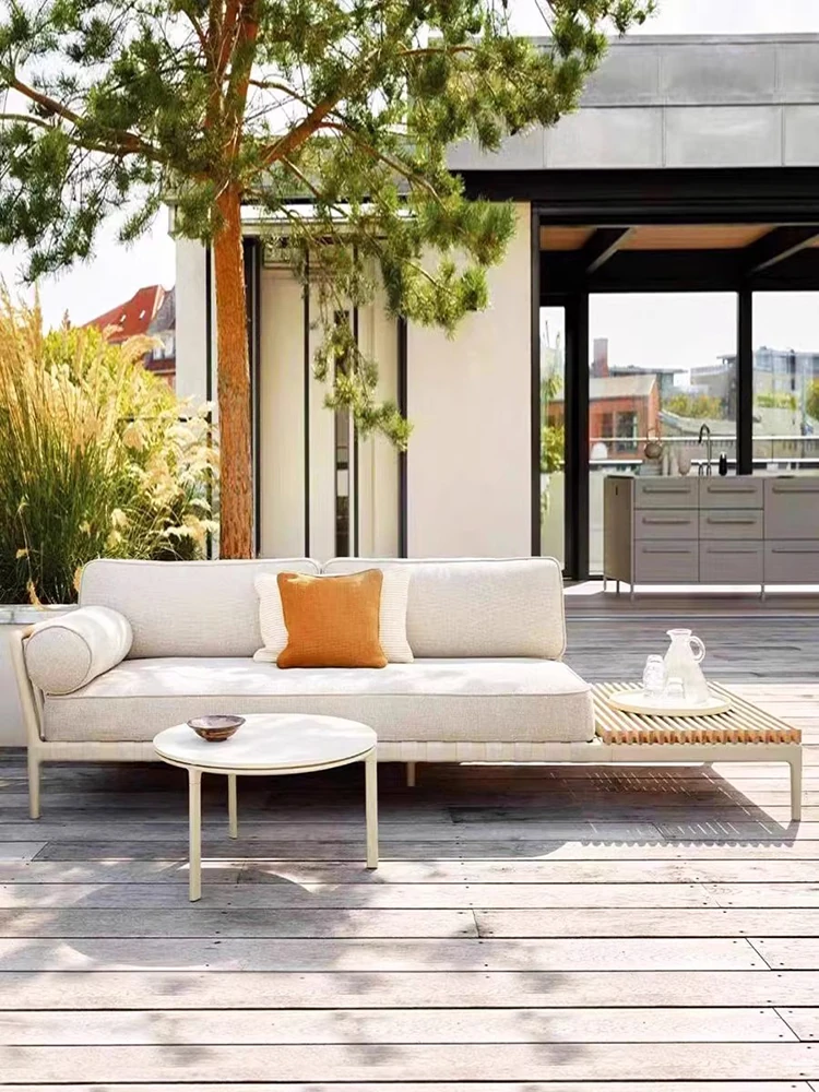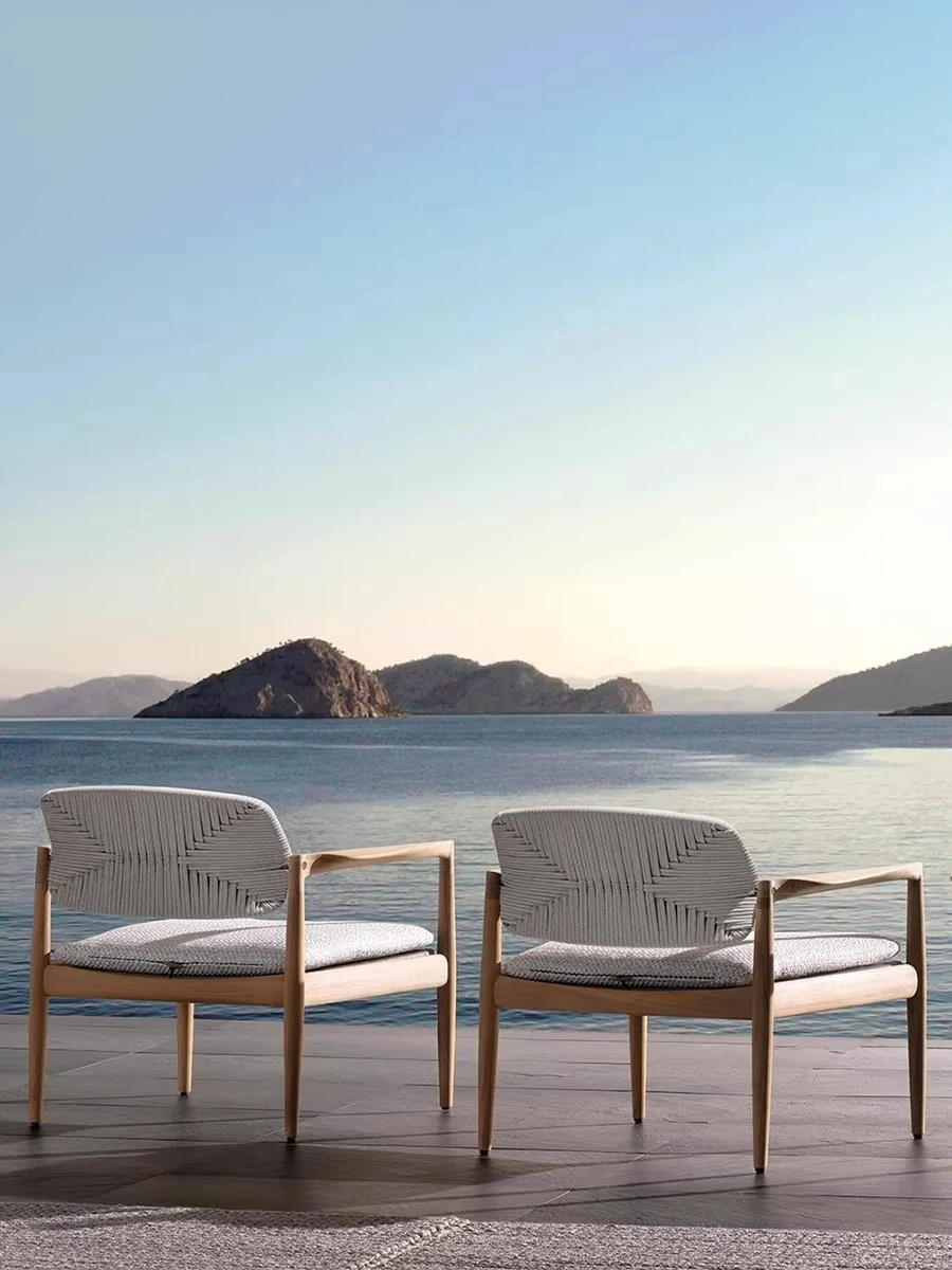 北欧スタイルのアウトドアソファ:耐水性デザインで、リビングや庭、別荘に最適な快適な組み合わせ!高級感溢れるユーカリ材使用のリラックス家具で、優雅なひとときをお楽しみください。