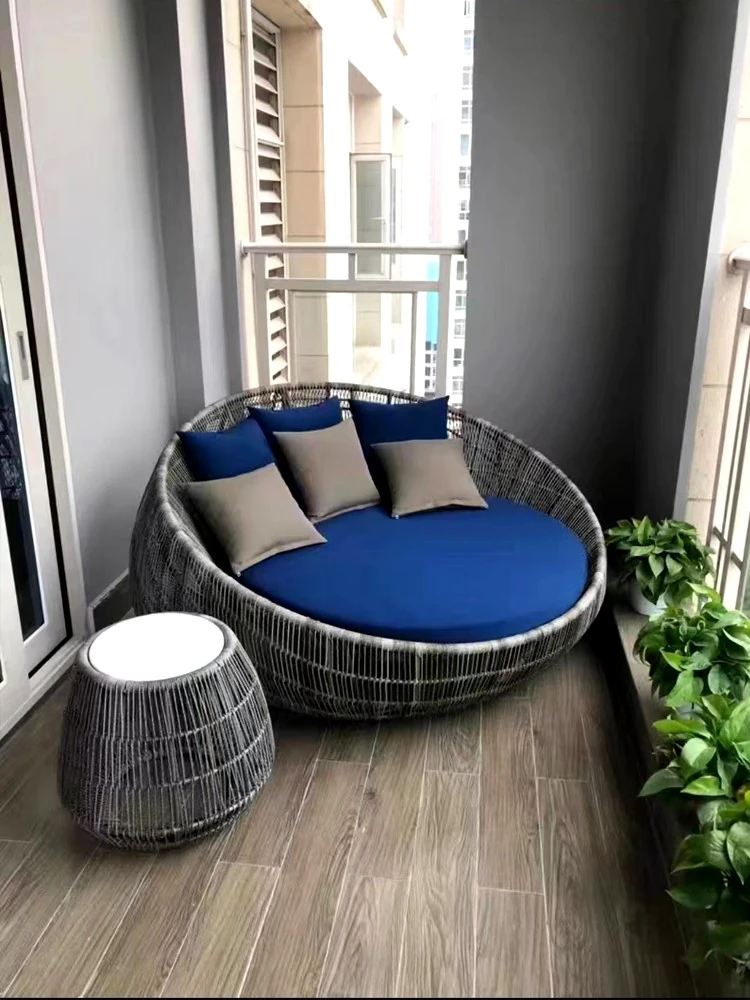 北欧スタイルのアウトドアソファ!バルコニーやプールサイドに最適なラウンジチェア。洗練されたデザインの藤編みラウンジベッド、室外テラスやリビングにぴったりの丸型藤椅子ソファ。心地よいひとときをお楽しみください!