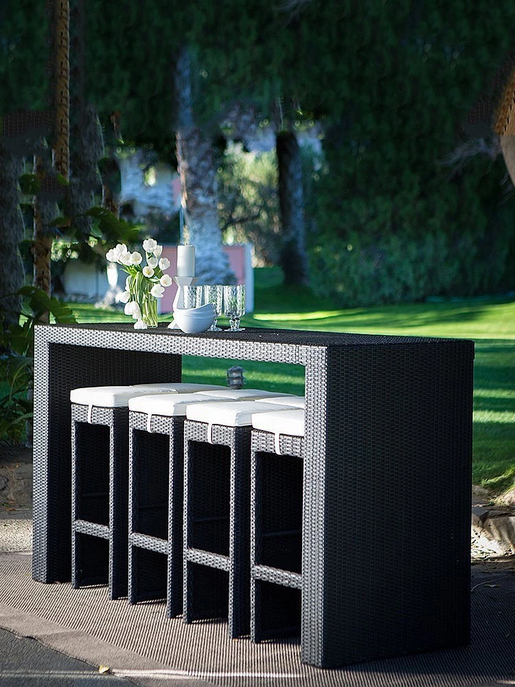 アウトドアラタンチェア 高脚バー椅子 バルコニー用シンプルなテラス庭園リラックスセット おしゃれなラタン製テーブル&チェアコンビネーションで、快適なひとときをお楽しみください!