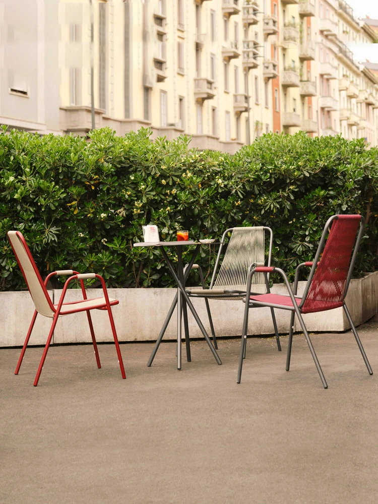北欧風アウトドアロープ編みテーブル&チェアセット - 屋外ガーデン・バルコニーに最適なリラックスラタンチェア3〜5点セット!おしゃれで快適なひとときをお楽しみください。