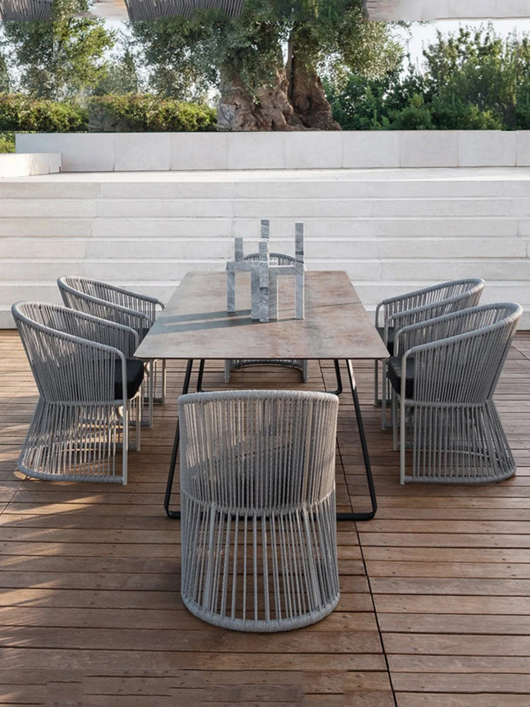 デザイナーが手掛けたアウトドアソファ - おしゃれなバルコニーや庭に最適!リラックスしたひとときを演出する編み込みソファ。ホテルやカフェにもぴったりな、スタイリッシュなガーデンファニチャー。
